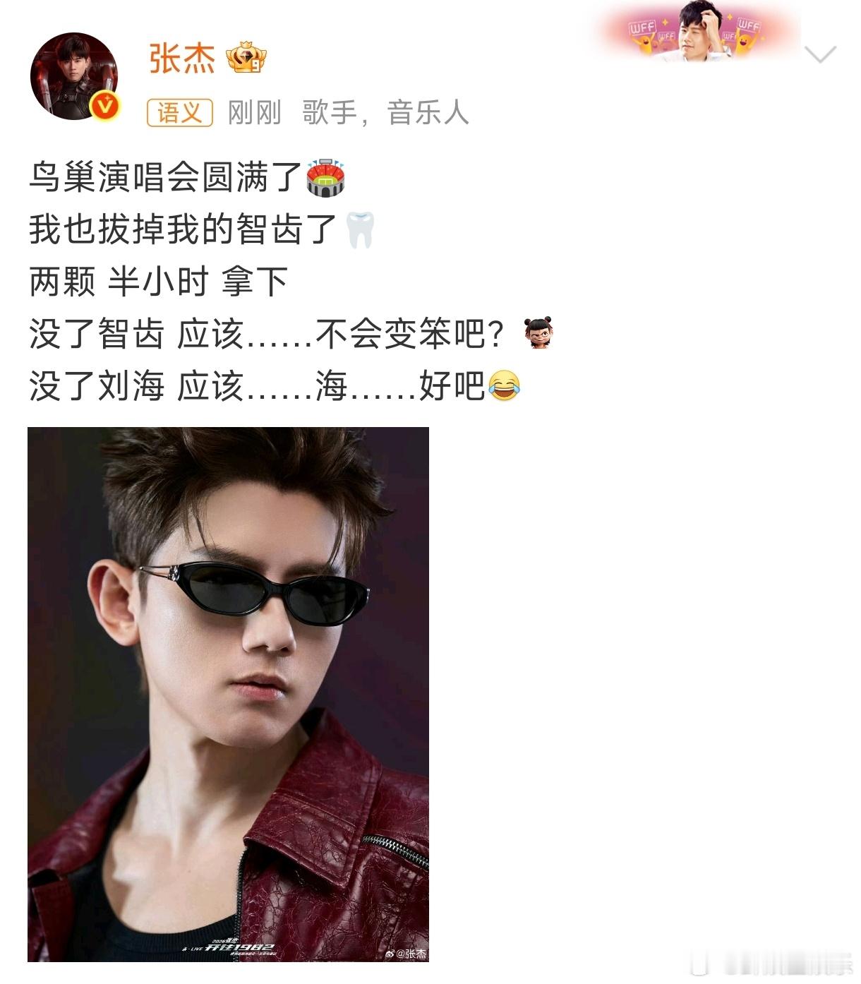 张杰拔智齿了张杰演唱会之后去拔智齿了张杰演唱会结束去拔智齿了张杰拔了2颗智齿