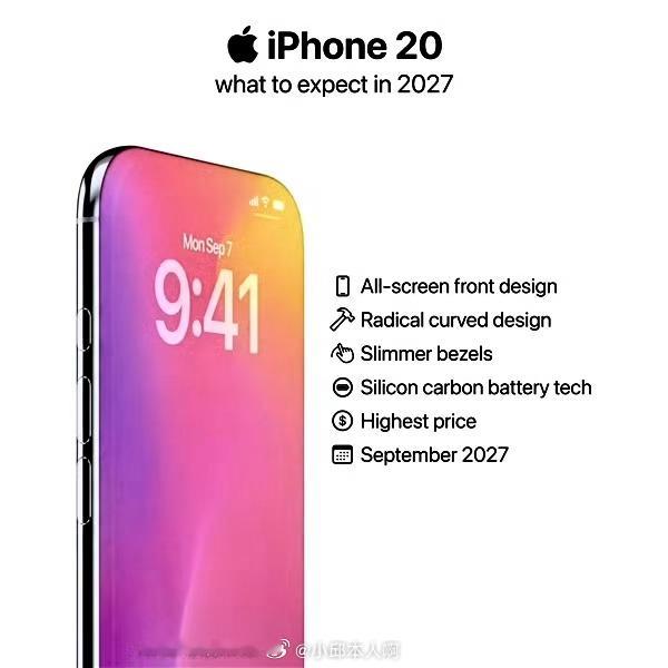 曝苹果将推出真全面屏手机极有可能用于2027年发布的苹果20周年纪念机型,该机或将首次实现前置摄像头与Face ID模组的屏下集成,成为苹果史上首款真全面屏iPhone。