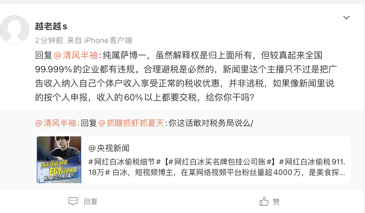 3.至于企业劳务和赋税成本,我作为创业开小公司的可比你熟悉,这跟网红个人收入纳税根本不是一回事,不要混为一谈。