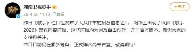 歌手2026阵容尚未正式官宣 阵容都是网传,还没有正式官宣哦,海报也是Ai