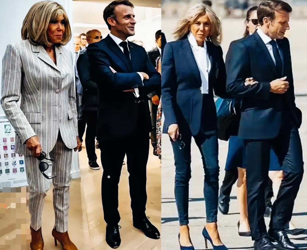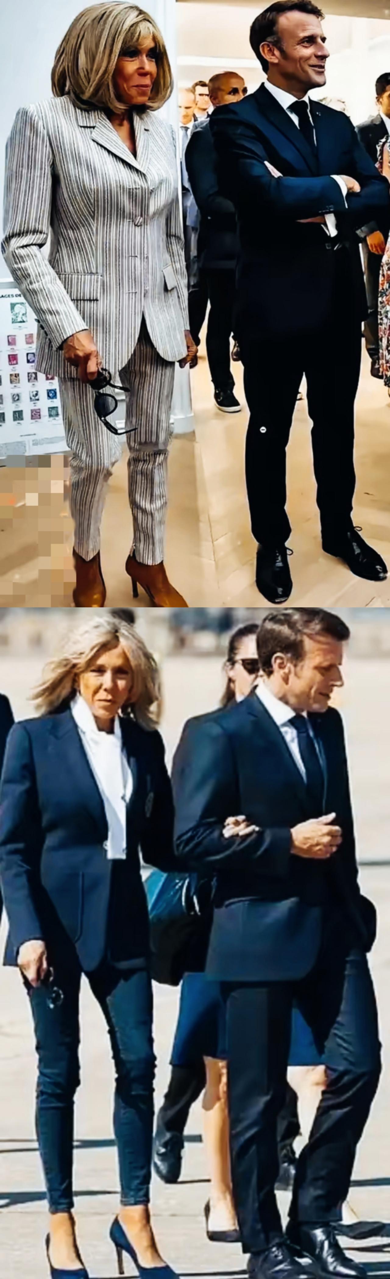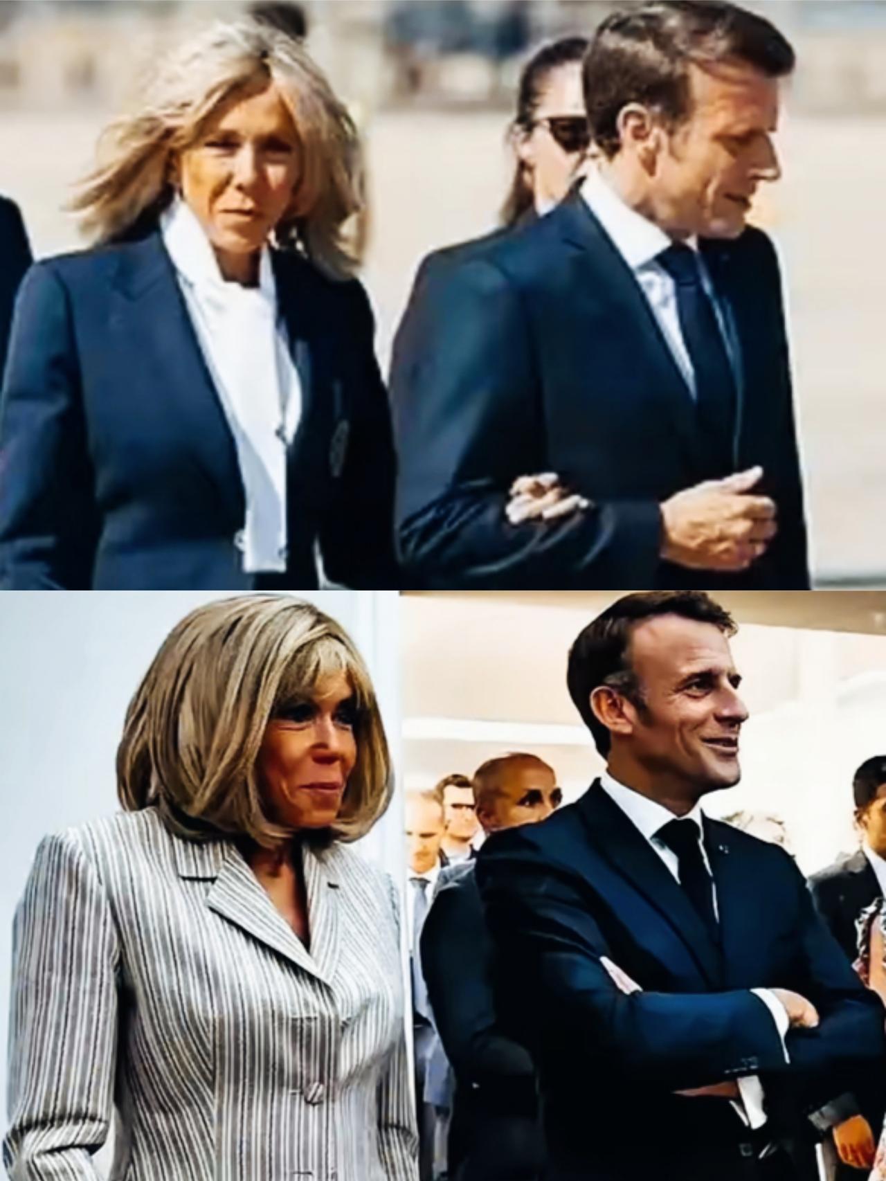 马克龙和妻子布丽吉特站在一起时,两人的表情写满了什么心情呢? 马克龙和布丽吉特在一起时,脸上更多的是开心呢?还是更多的紧张害怕呢? 布丽吉特的表情看起来是不是比较一致啊?始终保持一种很有特点的表情啊!
