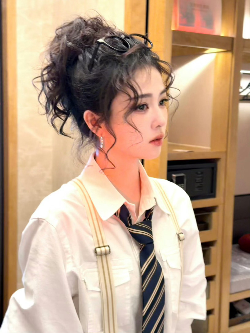 白鹿今天是卷毛造型白梦妍这期跑男造型真的绝绝子!港风背带裤搭配简约白衬衫,复古感瞬间拉满,清爽又耐看。