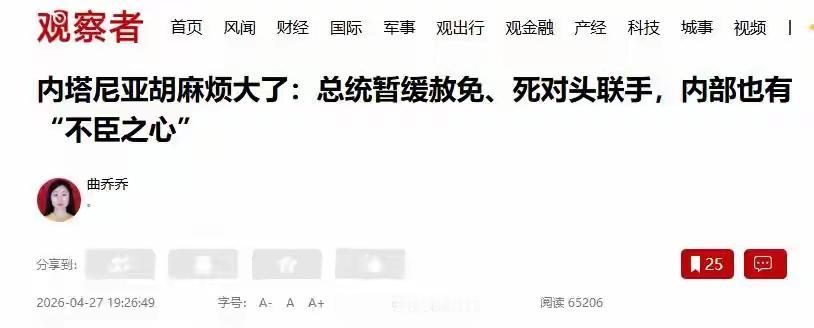 伊朗有救了!内塔尼亚胡大麻烦来了,而且一来就是“三” 2026年的春天,中东局势迎来剧烈反转。曾经靠战争转移国内矛盾、在地区横行的以色列,如今深陷多重危机。内塔尼亚胡试图借战时氛围为政治前途续命,却不料三道致命麻烦接踵而至,相互交织、层层叠加。与之相反,压力骤减的伊朗迎来战略喘息期,凭借灵活外交稳住阵脚,彻底扭转被动局面。 第一道麻烦,来自政坛内部的致命围剿。10月大选在即,内塔尼亚胡的执政根基正被反对派连根拔起。4月26日,前总理贝内特与拉皮德联手成立“团结”新政党,公开剑指终结内塔尼亚胡时代。二人态度强硬,承诺胜选后立即组建国家调查委员会,彻查2023年阿克萨洪水事件的安全责任。这无疑戳中内塔尼亚胡的最大软肋,他此前多次推迟调查,就是为了掩盖外部资金合作的隐秘,为自己争取政治缓冲。 如今,反对派联合引发政坛风暴,民调数据持续恶化。新党支持率一路攀升,预计能在120席议会中稳过半数,而内塔尼亚胡领导的利库德集团支持率不断下滑,彻底失去安全屏障。超半数以色列民众反对其参选,昔日团结右翼的能力荡然无存,内塔尼亚胡赖以生存的政治氛围彻底崩塌,败局已初露端倪。 第二道麻烦,是军队内部的信任裂痕。内塔尼亚胡本想将黎巴嫩边境的军事失利甩锅给国防军与摩萨德,以此转嫁执政压力,却引发军方强烈反弹。近期贝卡谷地冲突造成14死37伤,平民伤亡加剧社会焦虑,而内塔尼亚胡非但不反思决策失误,反而将所有责任推给前线将士。军方高层与退役将领公开发声,痛斥其过度消耗军队换取个人政治利益,直言这种行为正在透支军队士气。 长期多线作战早已让以军疲惫不堪,预备役士兵反复征召导致身心俱疲,极端正统派兵役豁免争议持续发酵,兵源危机日益凸显。军队对政府的不满不断累积,内塔尼亚胡口中“最忠实的力量”已然动摇,一旦矛盾激化,军队内部秩序恐难维持,军事体系濒临失控边缘。 第三道麻烦,源于外部盟友的釜底抽薪。过去,美国是以色列最坚实的后盾,可如今美以利益彻底错位。特朗普深陷国内困境,中期选举压力巨大,支持率跌至三成,党内质疑声不断,早已无力顾及中东局势。美国国内通胀飙升、油价高涨,白宫对以色列的表态愈发冷淡,昔日无条件的安全承诺沦为空头支票。 更严峻的是,内塔尼亚胡的国际处境持续恶化,已有20个国家表态执行国际刑事法院逮捕令,欧洲多国不再为其提供庇护,国际活动空间急剧收缩。外部支持的断裂,让以色列陷入孤立无援的境地,内塔尼亚胡再也无法借助美国力量压制对手、掩盖危机。 三道麻烦环环相扣,形成致命连锁反应:政坛失势引发军心涣散,外交孤立加剧内部动荡,内塔尼亚胡亲手引爆的危机,最终反噬自身。这场困局,恰恰为伊朗创造了绝佳机遇。 伊朗精准把握局势,放弃贸然对抗的激进策略,转而开启灵活的穿梭外交。伊朗外长阿拉格齐行程紧凑,先后到访巴基斯坦、阿曼,4月27日赶赴莫斯科与普京会晤,不断拓展外交缓冲空间。伊朗不再被动接受美国的苛刻条件,谈判核心诉求转向终结战争、解除制裁、索取赔偿,外交主动权牢牢握在手中。 如今的中东,局势已然悄然改写。以色列深陷内忧外患,内塔尼亚胡的政治生涯岌岌可危,而伊朗凭借战略定力与精准布局,逐步摆脱封锁困境,生存空间持续扩大。历史充满讽刺,内塔尼亚胡本想借战争稳固权力,却让以色列陷入更深的泥潭。 无论10月大选结果如何,以色列的政治变局都将重塑中东格局。伊朗无需正面硬拼,只需静观其变、深耕外交,便能坐等局势向利好方向倾斜。这场中东角力远未落幕,但内塔尼亚胡的三重危机已经注定,伊朗的转机已然到来,谁能笑到最后,时间终将给出答案。上联:青山披锦绣,邀请高人对下联 外资收购Manus项目会有何影响 以总统意图促成内塔尼亚胡认罪协议