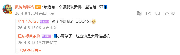 iQOO要准备出推iQOO15T?