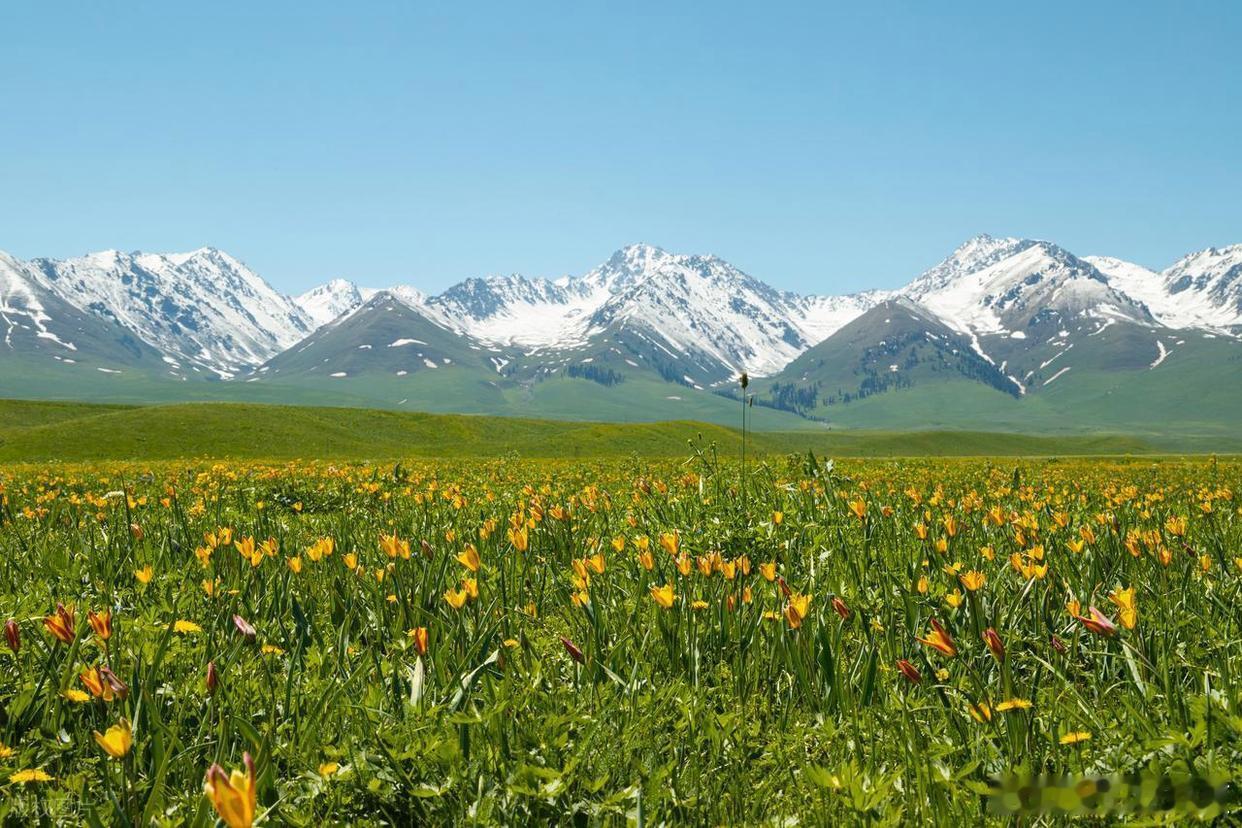五月伊犁真的是被低估的神仙目的地,五月下旬草原已经铺满新绿,漫山野花点缀其间,雪山依旧巍峨伫立,走在这里每天都像活在童话里~