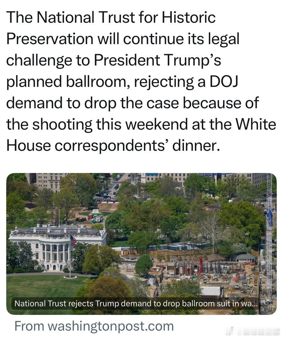 枪击事件后,司法部要求“状告白宫宴会厅工程”的民间组织停止诉讼,因为“总统真的需要安全的宴会厅”