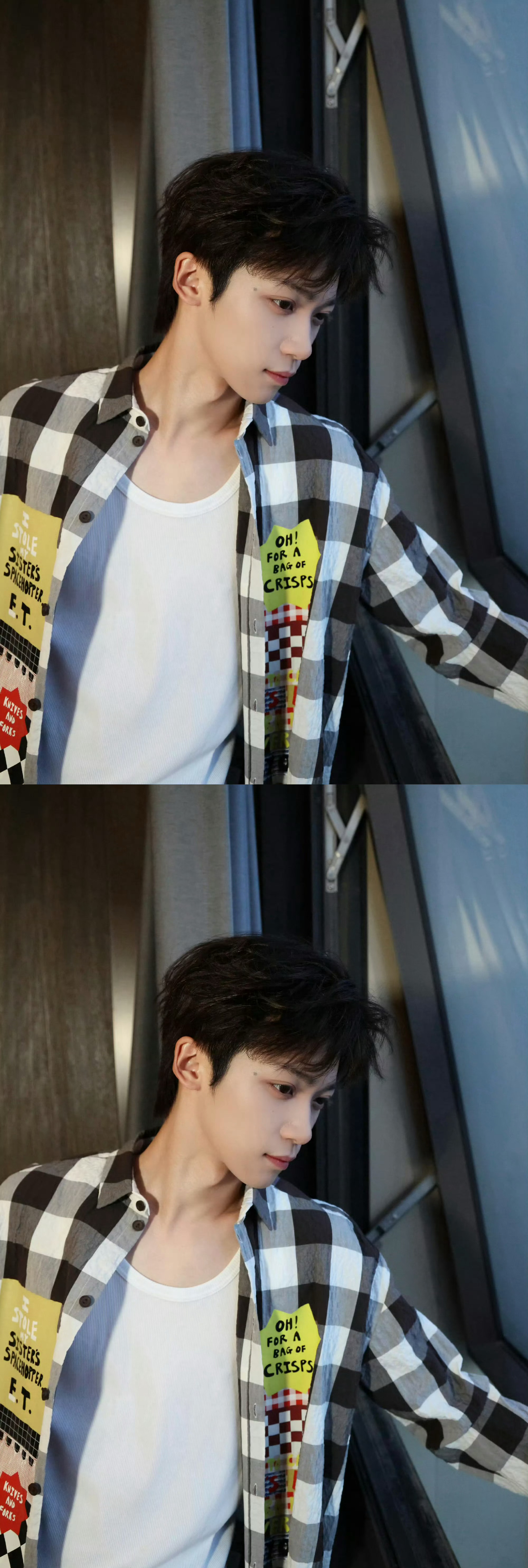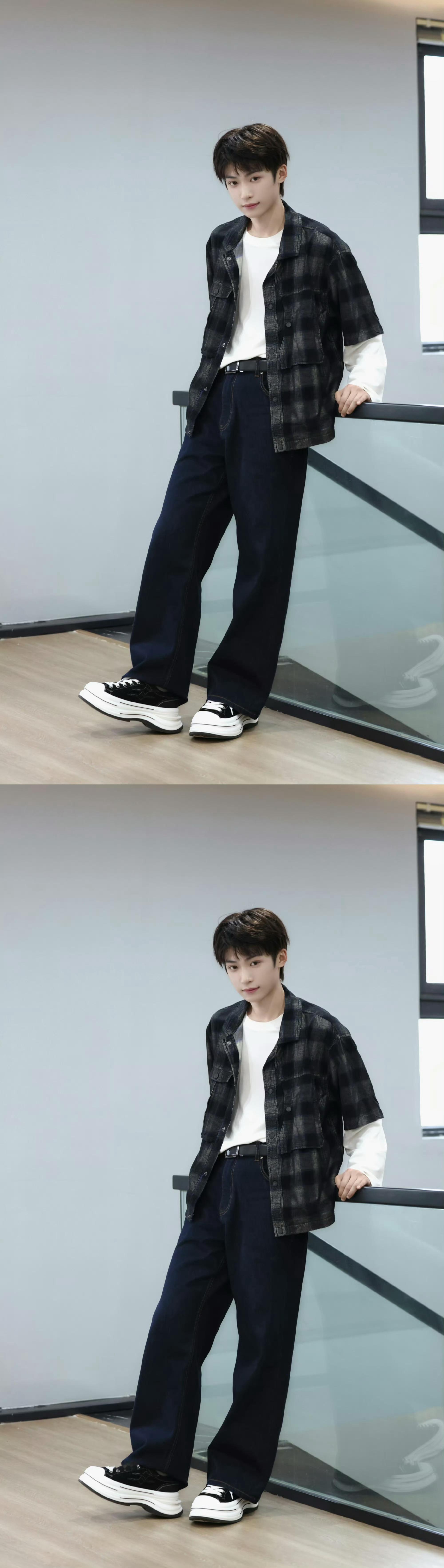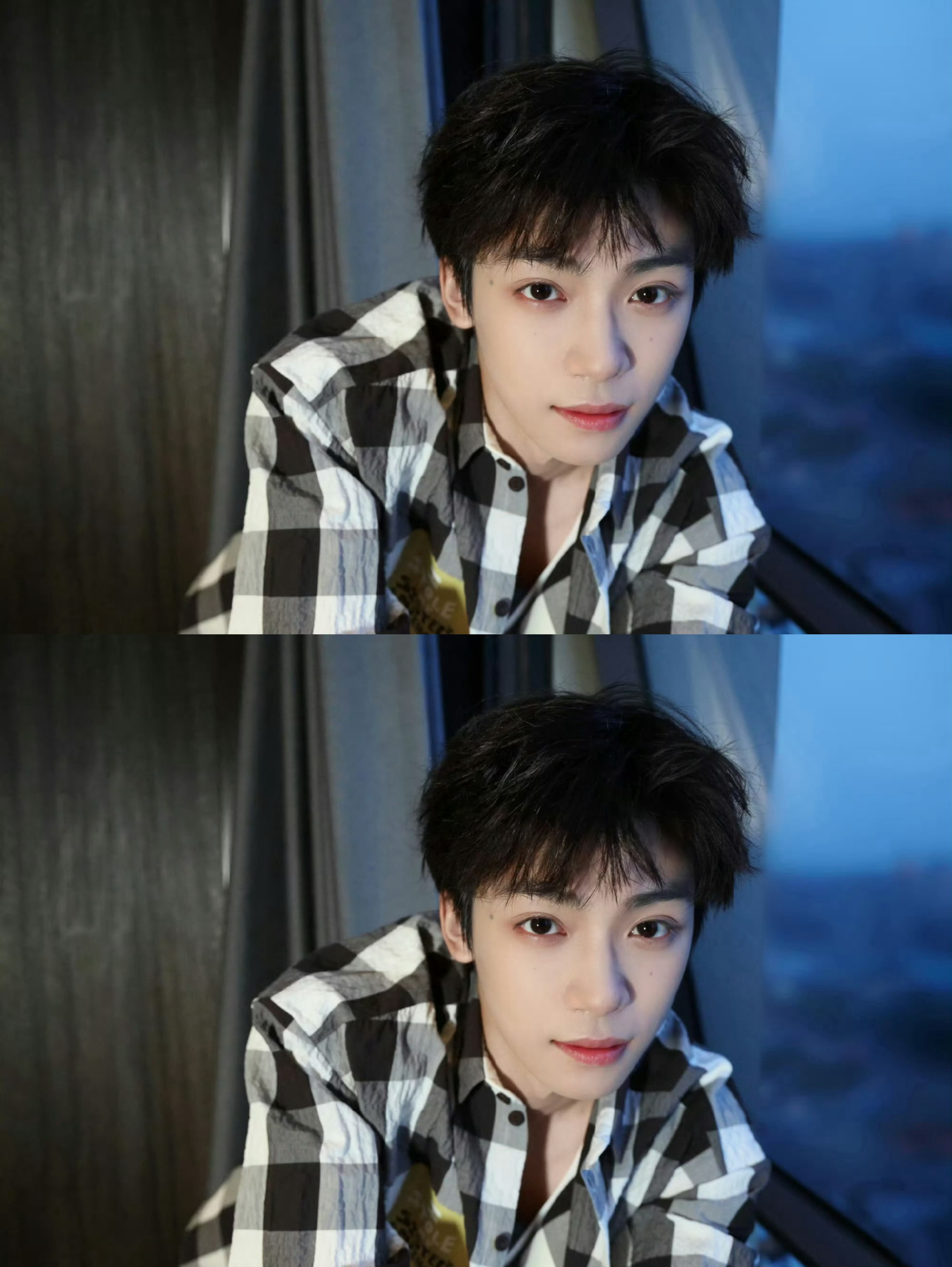 梓渝蓝调时刻 梓渝格子衬衫营业梓渝今日份新鲜营业:蓝调时刻!格子衬衫六宫格,帅气满分