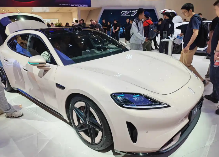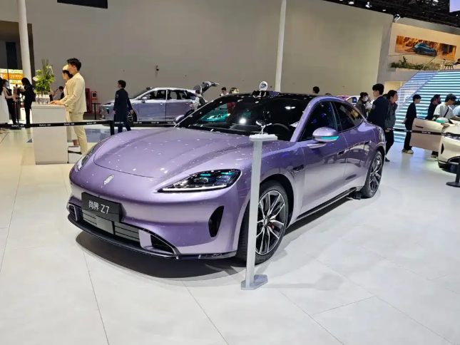 全系896线激光雷达,小米SU7头号劲敌,北京车展实拍尚界Z7Z7T 外观:轿跑姿态 vs 猎装范儿 尚界Z7走的是动感轿跑路线,宽体、低趴、修长,肉眼看很有冲击力。而Z7T前脸跟Z7基本一样,但车身换成了流畅的猎装造型,更显舒展。前大灯里面藏了408个镭射发光点,用的是分割式透镜光路,点亮后挺有辨识度。前包围两侧有导流槽,中间是主动进气格栅,车顶那颗激光雷达也很醒目。 侧面:线条饱满,细节到位 Z7侧面肌肉感很强,配了电吸门,翼子板那里做了通风道。轮胎规格前245/45 R20、后275/40 R20,后胎很宽,抓地力不错。Z7T因为是猎装版,侧面线条拉得更长,视觉上更优雅。两款车尺寸一样,长宽高5036mm×1976mm×1465mm,轴距3000mm,标准的中大型轿车身材。 车尾:上窄下宽,小鸭尾点睛 尾部设计很动感,后包围的扩散器造型运动味儿十足。尾灯点亮后有星河效果,上面还微微翘起一个小鸭尾。听现场工作人员说,新车提供10种车身颜色,部分车漆用了5C2B涂装工艺,光泽度和耐磨性都更好。轮圈样式有8种可以选。 内饰:拼色座椅,屏幕会“转头” 内饰有沁夜红、速影黄、凝夜紫、闪金黑、缥云杏5种配色,都是年轻化的拼色设计,配上运动一体式座椅,坐进去挺有氛围感。中控台上有仪表盘、大尺寸悬浮中控屏和副驾屏。最特别的是这个“随动四维屏”,可以前后伸缩、左右旋转,还能自动转向。你喊“小艺”它就会转过来对着你,智能迎宾功能也有,挺好玩。 智驾与安全:标配ADS 4.1 辅助驾驶方面,全系标配新一代896线双光路激光雷达,分辨率比上一代提升了4倍,远距离能识别14厘米高的小目标。加上华为乾崑智驾ADS 4.1,日常跑高速、城区都能轻松不少。 动力与续航:3.44秒破百 动力有两种选择:单电机后驱版最大功率359马力(264千瓦),双电机四驱版最大功率590马力(434千瓦)。电池是宁德时代的三元锂,81度或100度,配上华为巨鲸800V高压平台,CLTC最长续航905公里。双电机版零百加速3.44秒。车身刚性也不错,高强钢和铝合金占比91%,全车有14处用了2000MPa潜艇级热成型钢。另外全系标配华为途灵平台,支持智能车身协同控制和动态自适应扭矩控制。