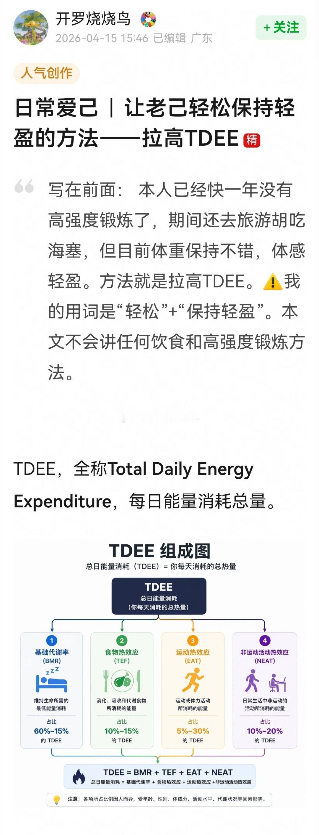 好帖分享→让老己轻松保持轻盈的方法——拉高TDEE~