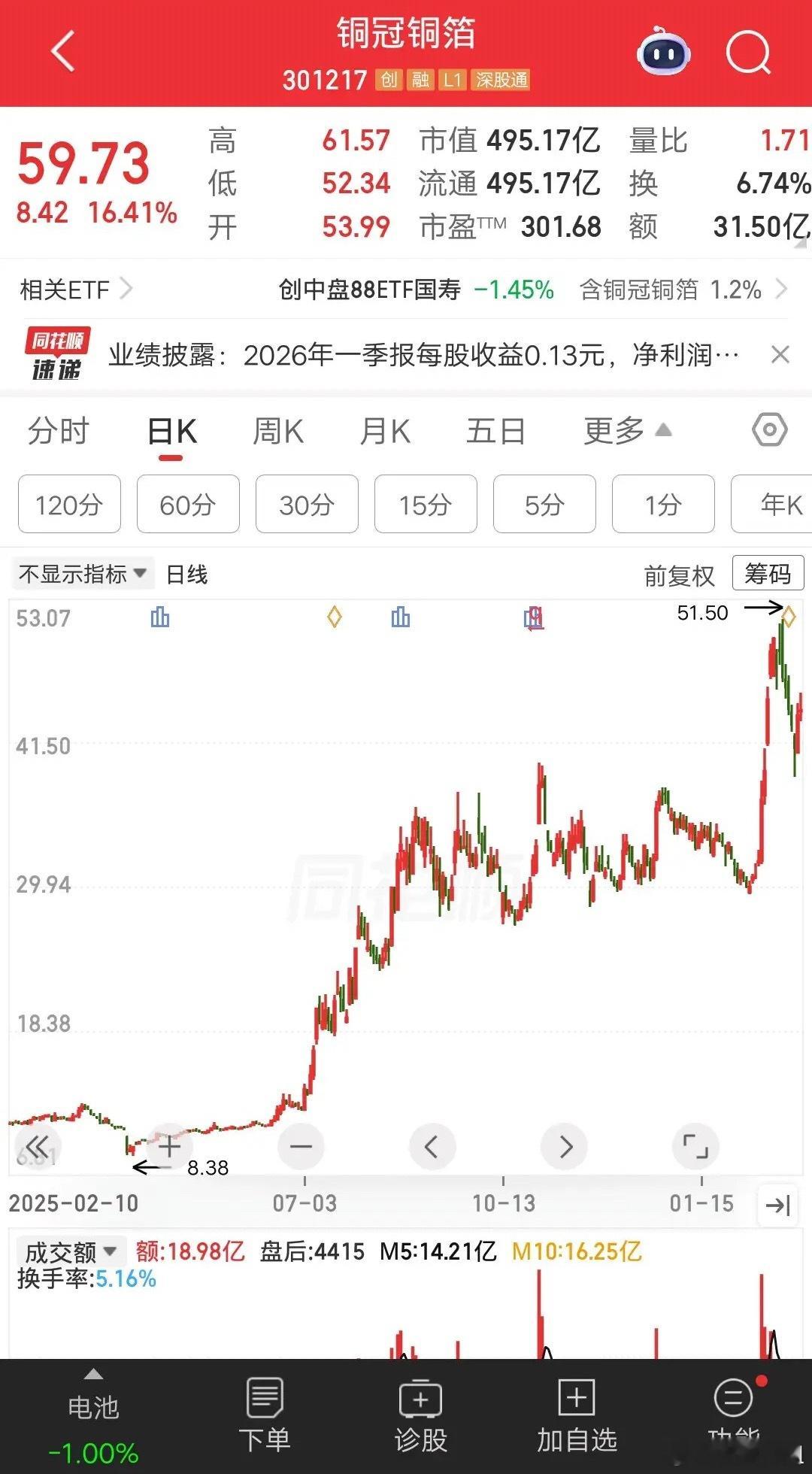 一位江苏的股民,8.8元买了18万铜冠铜箔,10.78元止盈卖出。浮盈22%赚了4万块,他开心的手舞足蹈呀。当时市场行情很极端,连续三天个股大跌。他学巴菲特,别人恐惧我贪婪,于是满仓抄底买入了。后面股价逐步修复了跌幅,他觉得可以卖出了。过了一段时间,铜冠铜箔20cm涨停了,他好奇的点进去一看,发现股价涨到30元了。他才后知后觉,自己卖飞了。他肠子都悔青了,心里别提多难受了。于是又在36.23元冲进去了,这次运气差了点,买完股价就下跌了。他怕被套赶紧割肉,亏了2万多块。更让他气愤的是,买完没几天股价反弹了,如果没卖的话,不仅回本还能挣钱。他越想越不甘心,又在39元附近追高买了,心想这次一定要拿住了。可幸运女神并没有眷顾他,捂了三个半月的时间,在30元左右止损,这次亏得更多7万块。从最初盈利4万,到后来倒亏5万。他后悔随意追涨杀跌,可事情已经发生,后悔也来不及了。朋友们有这种作业模式吗?今日看盘a股