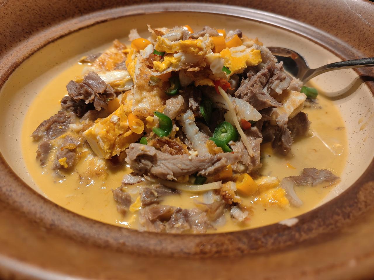 潜山的早餐。牛肉粉丝汤和豆腐脑。