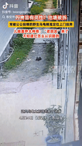 近日,广东汕头,一只野生乌龟从废弃水塘中爬出,它从未踏足过人类家门,万万没想到的是,它竟然精准爬到常年投喂它的老人家门口。 信息来源:星视频 村边那口闲置水塘,早就荒草丛生,里面除了龟,还有几尾鲫鱼游来游去。 老张头每天傍晚溜达到那儿,兜里揣着杂粮和鱼饲料,像喂自家孙子似的,把吃的撒给它们。 时间长了,草龟见人就上,认得老张头的味道,成了绝对“老熟人”。 可前阵子,水塘被挖机一填平,顿时化为一片碎石和泥土。 老张头心里咯噔一下,赶紧过去找,空无一龟,只剩坑洞和草堆。 家人们还安慰他说:“龟会钻到地下啥地方去呢,别太挂念。” 万万没想到,几天后,儿媳谢女士打开门就看见一个“绿盘子”——那只草龟竟然自己跑来了! 她急忙翻监控,画面里小家伙翻过土堆,绕过碎石,蹲在路口瞅车流;过马路时还特意停下等绿灯,整个过程足足爬了几百米。 谢女士乐坏了,赶紧打电话给老张头:“爸,你的老朋友来看你啦!” 老张头匆匆赶回去,一见龟壳那熟悉的斑纹,眼眶都湿了。 他没想到,这只野生小家伙,凭着一股气味和记忆,一步步找回了唯一的依靠。 动物行为学专家表示,龟类拥有超强的空间记忆和嗅觉导航能力。 多日里老人投喂,早就把“老张头=食物+安全”深深刻在脑子里。 家园被毁后,它并没有四处乱跑,而是凭着这份“美好印象”一路冲回来。 视频一出,网友们直呼神奇:一只乌龟会认人、会认路,活生生把“万物有灵”演绎在废墟与泥土间。 万物皆有灵,你对小动物释放善意,它也会回馈你,会给你带来意想不到的惊喜。