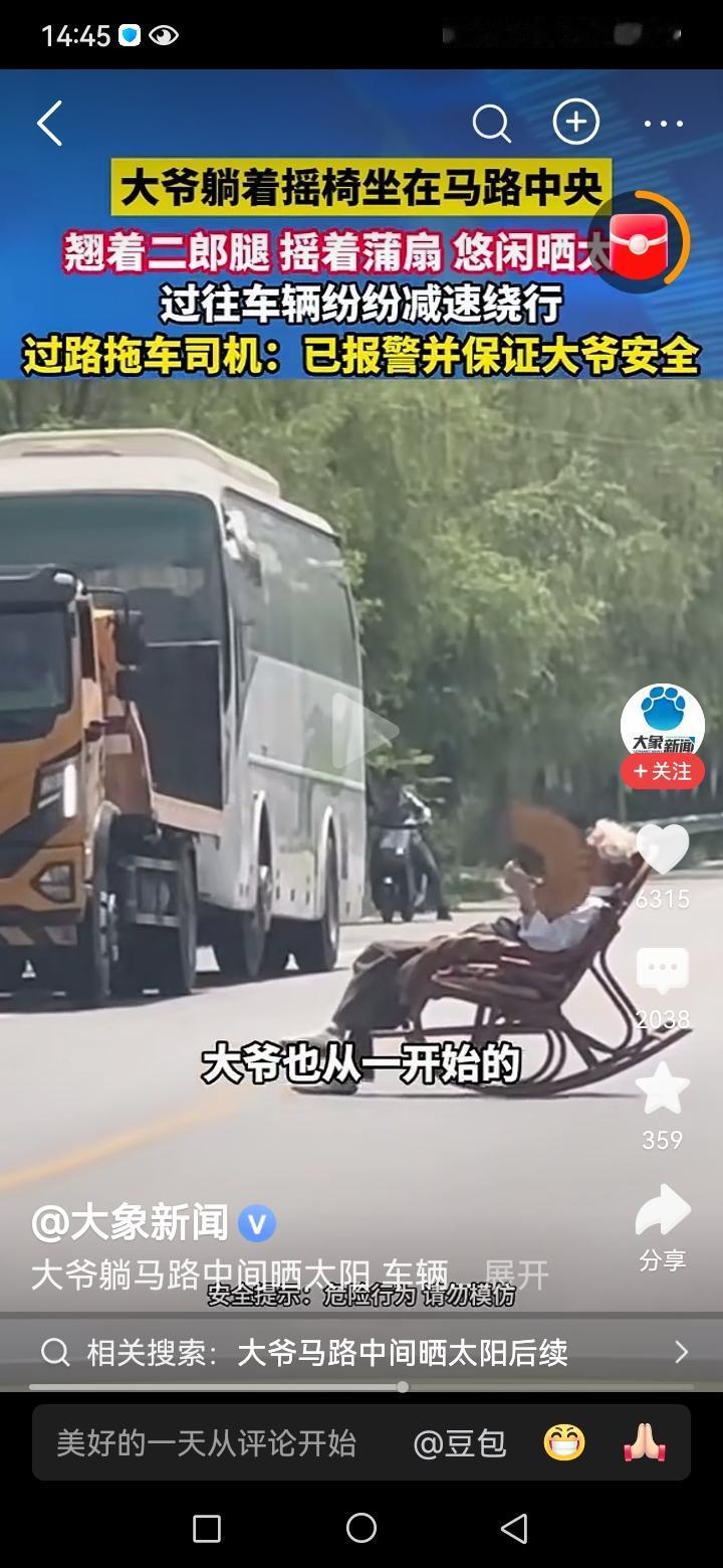 看这些大爷们,大马路中间放个躺椅,悠闲的扇着风扇,就这样公然的违法,可能他心里面想的是,你们谁敢撞?也或者是即便我违法了,你能把我怎么样?对付这样的无赖大爷,还需要用人道的方法吗?你把他抓了,还得管他吃,管他医,难道我们就没有更好的办法对付他们吗?我们需要一套制度,一套方法去治理他们,但这么多年下来了,似乎拿他们是毫无办法。有人讲扣退休金,你就是扣了他退休金,难不成你要把他饿死吗?这都是治标不治本的方法。有时候看到这样的新闻恨的牙痒痒。