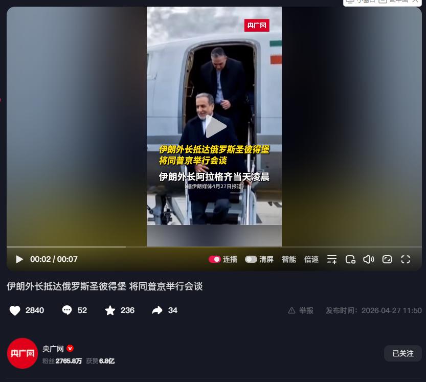 4月27日凌晨,伊朗外长阿拉格齐的专机降落在俄罗斯圣彼得堡,这场深夜抵达的外事访问,从落地的那一刻起,就注定不是一场普通的外交走秀。 几个小时后,阿拉格齐直接和俄罗斯总统普京举行了长达一个半小时的闭门会谈,会后俄伊双方不约而同用了同一个词形容这场会面——富有成效。 别小看这短短四个字,这背后是中东地缘格局的一次关键定调,是伊朗在和美国的博弈里,终于找最硬的靠山敲定了最终底牌。 这场会面从一开始就透着不寻常,看看双方到场的阵容就知道,这根本不是谈普通双边合作的茶话会,是实打实的战略交底。 俄方这边,除了外长拉夫罗夫、总统助理乌沙科夫,连俄罗斯武装力量总参谋部总局局长科斯秋科夫都亲自到场,伊朗代表团则是外长带队,副外长、驻俄大使悉数到场,军方核心人物直接入局,就已经把这场会谈的核心议题摆得明明白白——不谈虚的,只谈战争与和平、安全保障、战略绑定这些最硬核的事,每一句话都关乎中东接下来的局势走向。 阿拉格齐这趟深夜奔袭俄罗斯,根本不是临时起意,而是一整套精心设计的外交布局里最关键的一步。在此之前的四天里,他已经接连走访了巴基斯坦、阿曼,又折返巴基斯坦,把伊朗针对当前冲突的三阶段停火方案、四项核心诉求,完整递交给了斡旋方。 伊朗的态度从一开始就没有任何模糊,先彻底停火、拿到实打实的安全保障,再谈霍尔木兹海峡的相关安排,至于美国死咬着要放进议程的核问题,伊朗直接把话挑明,外长根本没有获得相关谈判授权,前两个问题不解决,核问题免谈。 就是在这样的背景下,阿拉格齐落地圣彼得堡。说白了,他就是带着伊朗最高层的全盘计划,来找俄罗斯要最终的背书和兜底。 伊朗心里比谁都清楚,和美国这种单边主义至上的国家谈判,光靠嘴皮子和纸面条件根本没用,手里没有足够硬的筹码,身后没有足够稳的靠山,所有的谈判诉求都会被对方当成废纸。 而俄罗斯,就是当前国际格局里,唯一能给伊朗这份底气,也愿意给伊朗这份支撑的国家。 很多人对俄伊关系的认知,还停留在简单的武器买卖上,却没看清这两个国家早就完成了深度的战略绑定,是一根绳上的蚂蚱,退无可退。早在2025年,两国就签署了长达20年的全面战略伙伴关系条约,从政治、军事到能源、经济,实现了全领域的深度捆绑。 俄乌冲突的战场上,伊朗给俄罗斯提供了关键的无人机装备,解了俄军的燃眉之急;如今伊朗面临美以的军事威胁和全方位制裁,俄罗斯自然不会坐视不管,从先进武装直升机、防空系统的交付,到油田开发、核电项目的深度合作,再到联合国安理会的外交护航,俄罗斯给伊朗的支撑,是全方位、无死角的。 这场会谈里,普京的表态更是直接把俄方的底牌亮得干干净净。他明确表示,已经完整收到了伊朗最高领袖穆杰塔巴的信息,俄罗斯会竭尽所能,做所有符合伊朗及地区国家利益的事,尽全力为中东带来和平,同时毫不掩饰地表达了对伊朗人民捍卫国家主权和独立的钦佩。 阿拉格齐也当场给出了明确回应,直言俄伊之间的关系是牢不可破的战略伙伴关系,未来只会持续加强,同时感谢俄罗斯在这场不对等、不正义的冲突中,始终和伊朗站在一起。 这些话听起来是外交辞令,背后却是实打实的承诺和交底。说白了,俄罗斯就是给伊朗吃了一颗定心丸,不管接下来美国和以色列怎么施压、怎么耍手段,俄罗斯都会坚定站在伊朗这边,外交上帮伊朗斡旋发声,军事上给伊朗持续支撑,经济上帮伊朗打破美国的制裁封锁,就连最敏感的核问题,俄罗斯也早就做好了兜底的准备,此前就明确表态愿意接收伊朗的高浓缩铀,帮伊朗化解相关的舆论和安全压力。 这次会谈结束之后,伊朗在和美国的博弈中,态度只会更硬,绝无妥协退让的可能。阿拉格齐这一趟外交穿梭,从来就不是为了寻求美国的施舍和妥协,而是为了给接下来的博弈攒足筹码,而和普京的这场会面,就是他手里最硬的那张王牌。 美国一直以为靠军事威慑和极限制裁,就能逼伊朗低头让步,却完全没算到,伊朗不仅没有丝毫退缩,反而通过和俄罗斯的深度绑定,把自己的战略安全防线筑得越来越牢。 说到底,这场深夜抵达的外事访问,这场一个半小时的闭门会谈,从来就不是一次简单的外长访俄,而是中东地缘博弈的一次关键转折点。 俄伊的战略绑定再一次全面升级,美国想在中东地区一家独大、肆意妄为的日子,已经一去不复返了。 接下来的中东局势,必然会因为这场关键会面,迎来一次彻底的格局洗牌,而这场博弈的最终走向,从俄罗斯给伊朗亮出底牌的那一刻起,就已经注定了。