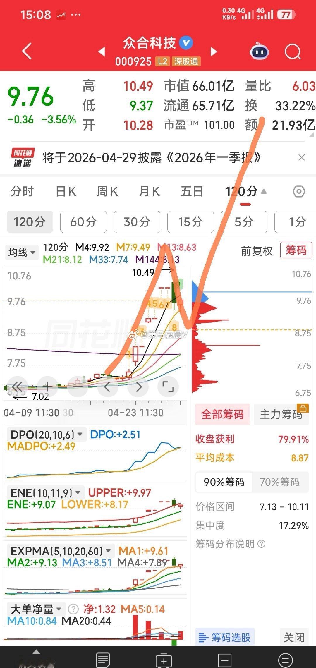 科翔股份恭喜昨天跟上的兄弟姐妹们。目前累计涨幅32.99%。点点赞我们继续一起前