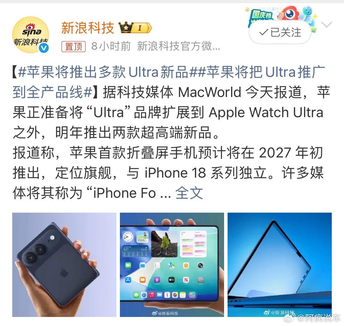 苹果的折叠屏一直被大家叫做iPhone Fold,Ultra一出,那应该就是iPhone Ultra了。