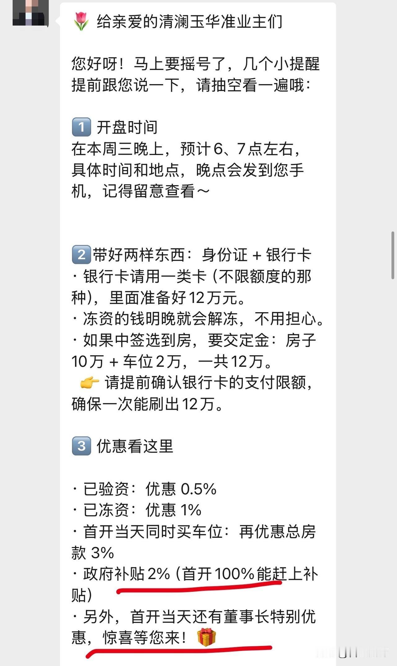 天阜清澜玉华马上要开盘了,折扣给的那是相当有诚意,不买车位985%,买车位再送3%,另当天还有董事长特别优惠。至于政府补贴跟项目毛关系没有,当下只要经开谁家都有,天阜给的这优惠大伙觉得还满意吗?