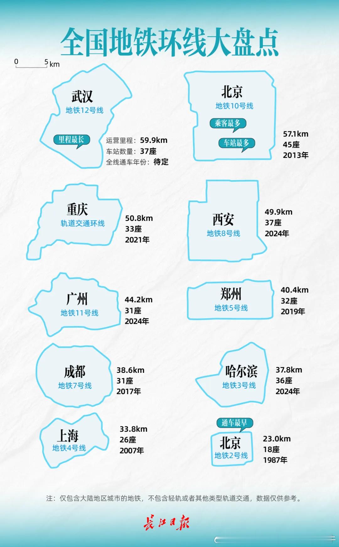 【武汉地铁12号线 即将开通,或战五一!?】近日,亚洲第一长、武汉首条地铁环线——12号线一期工程已具备初期运营条件,这标志着通车进入倒计时。12号线全长59.9公里,此次开通的一期工程长约35.32公里,起于青山区钢都花园站,终于汉阳区墨水湖公园站,设地下车站23座,5座换乘站可与4、8、11、5、6、16号线站内换乘。(长江日报)