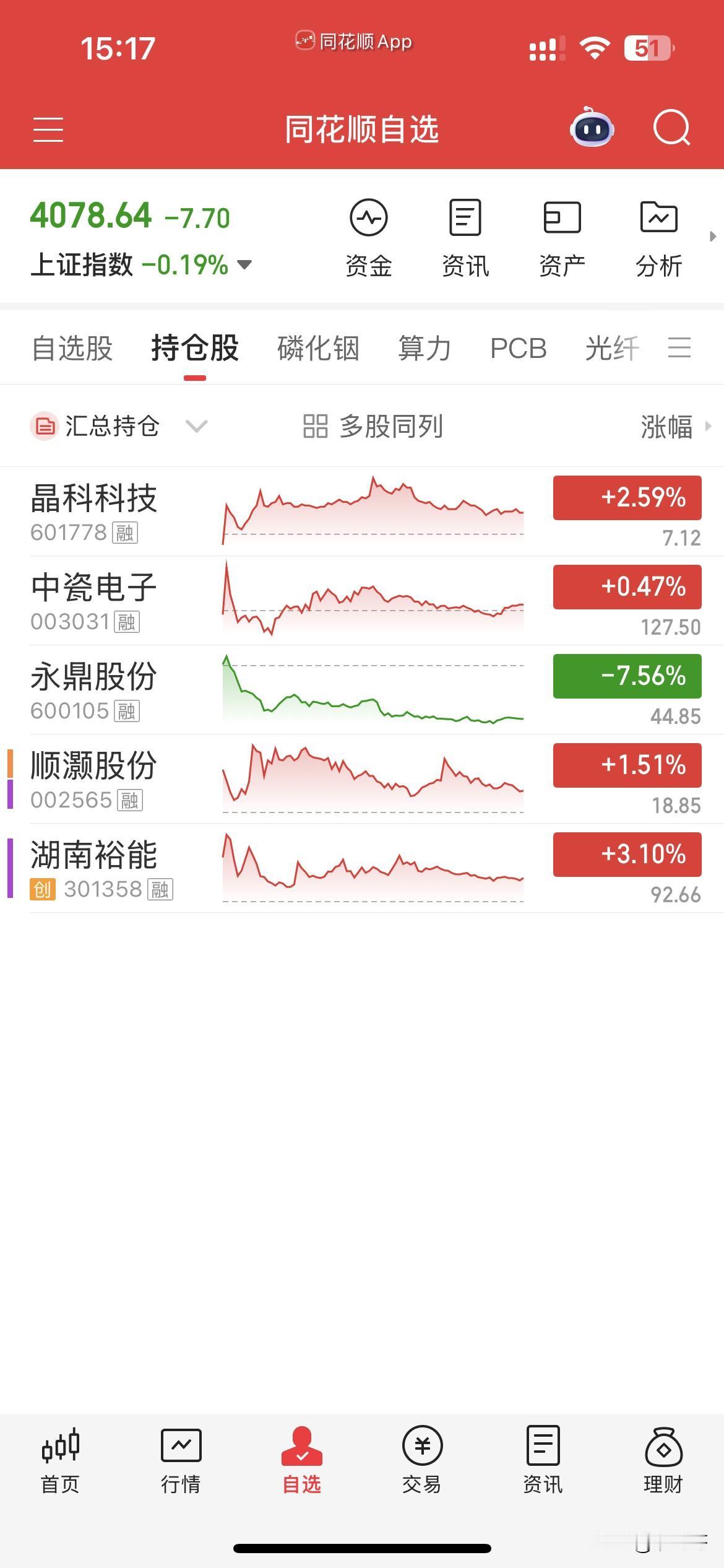4月28日,个人操作汇总: 一,清仓:永鼎,顺灏,裕能, 二,新开:晶科, 三,继续持有:中瓷, 永鼎,走弱,反抽是走了, 顺灏,下午冲不动,2个点走了, 裕能,同样是这么好的业绩,走成这样,尾盘走了(就怕跟昨天鼎龙一样,哎), 上午,新开了晶科,感觉后面有东西,结果下午被华电双雄抢了风头, 中瓷,今晚,丑媳妇见公婆,业绩怎么样该现原形了, 今天大盘还是老样子,指数不跌,个股不忍直视,季报雷遍地,所以下午我也没开新仓的原因,真是怕了, 所以节前最后两个交易日,只能先苟着了!