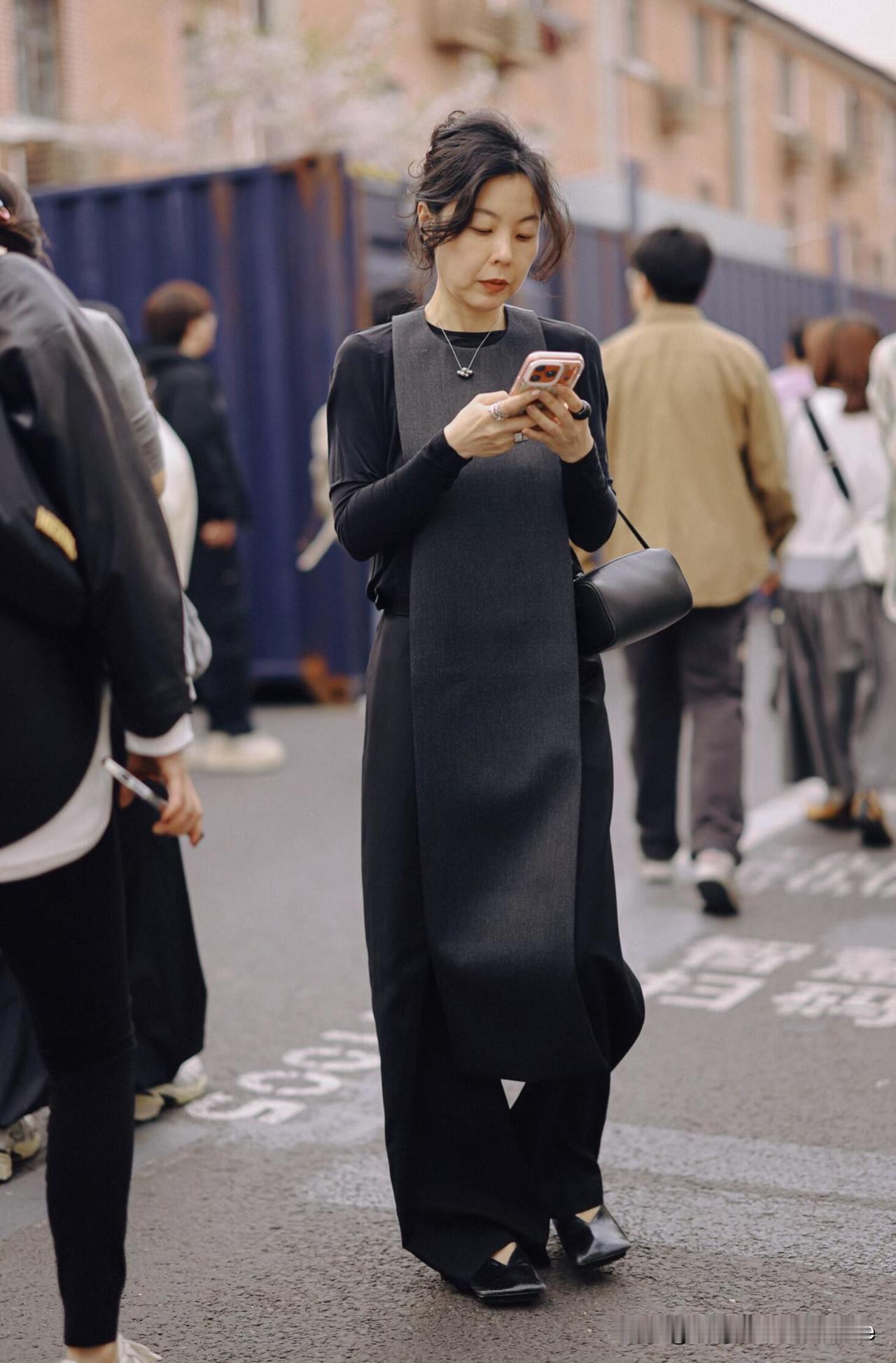 别再说中年阿姨土了! 看看上海街头, 时髦到你怀疑人生! 都说上海是时尚之都,走在上海的街头,你会发现这句话真不是吹的。尤其是那些阿姨们,她们的穿搭简直就是一本行走的时尚教科书,优雅、精致、个性,各种风格都能驾驭得游刃有余。 看看这几张街拍,就能感受到上海阿姨们的时尚功力。 第一位阿姨,一身黑色系的搭配,简约却不简单。黑色长袖内搭搭配同色系的阔腿裤,外加一件灰色长款马甲,立刻提升了整体的层次感。精致的盘发,小巧的项链,以及设计感十足的黑色小包,每一个细节都透露着品味。 第二位阿姨,则展现了另一种风格。一头蓬松的卷发,搭配粉色针织衫和卡其色长裙,温柔又知性。粉色针织衫随意地搭在肩上,增添了一丝俏皮感。棕色皮质手提包,更显质感。整体色彩搭配和谐统一,给人一种温暖舒适的感觉。 第三位阿姨,则选择了更具个性的搭配。灰色格纹西装外套,内搭白色衬衫,下身搭配浅蓝色牛仔裤,脚踩一双棕色尖头皮鞋,干练又时尚。黑色编织手提包,更显精致。短发造型清爽利落,搭配一副墨镜,气场十足。 所以,谁说老了就得穿大妈装?看看上海阿姨的街拍,这才是高级感!