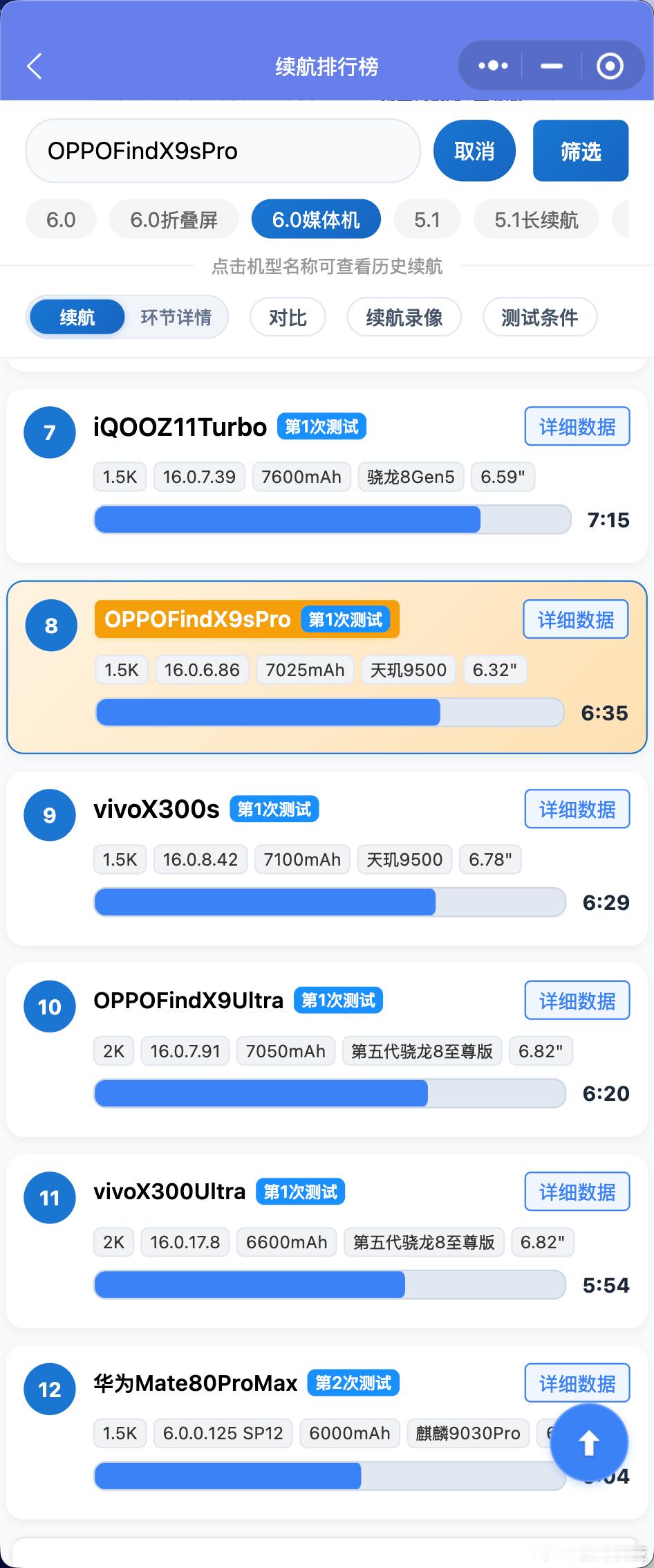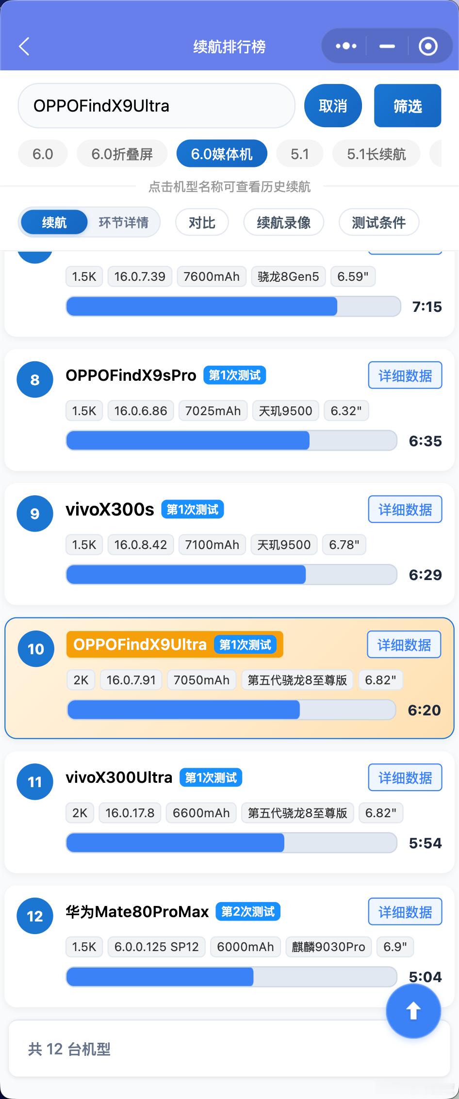 OPPOFindX9Ultra零售机和OPPOFindX9sPro零售机续航测试结果出来了: