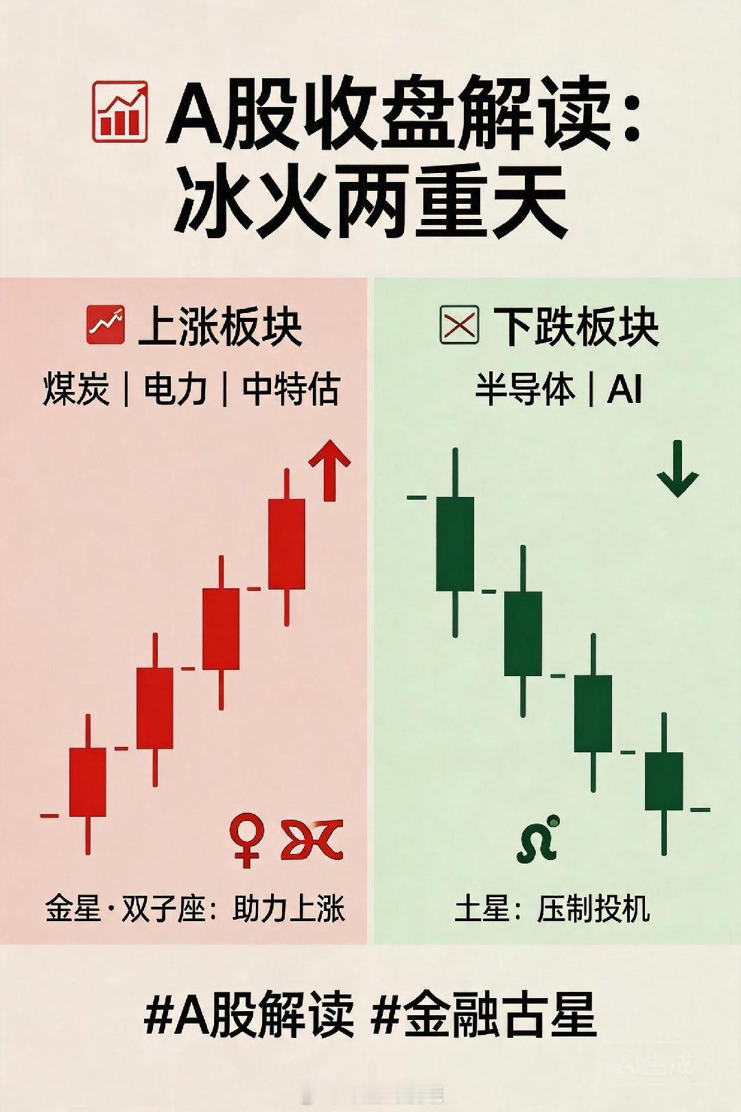 🌟 金融占星视角今日金星在双子座顺行,但月亮与土星形成紧张相位,市场呈现明显的"价值回归"特征:• 金星主财富,在双子座强调"信息差"与"分化"• 土星压制投机情绪,资金从题材股撤离• "中特估"的崛起符合土星"稳健、保守"的能量
