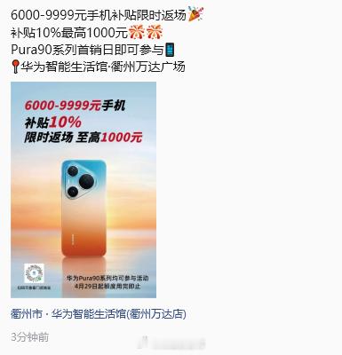 我去,浙江衢州的华为Pura90 系列竟然可以参加这个10%的活动,这不是直接打折了?真爽啊