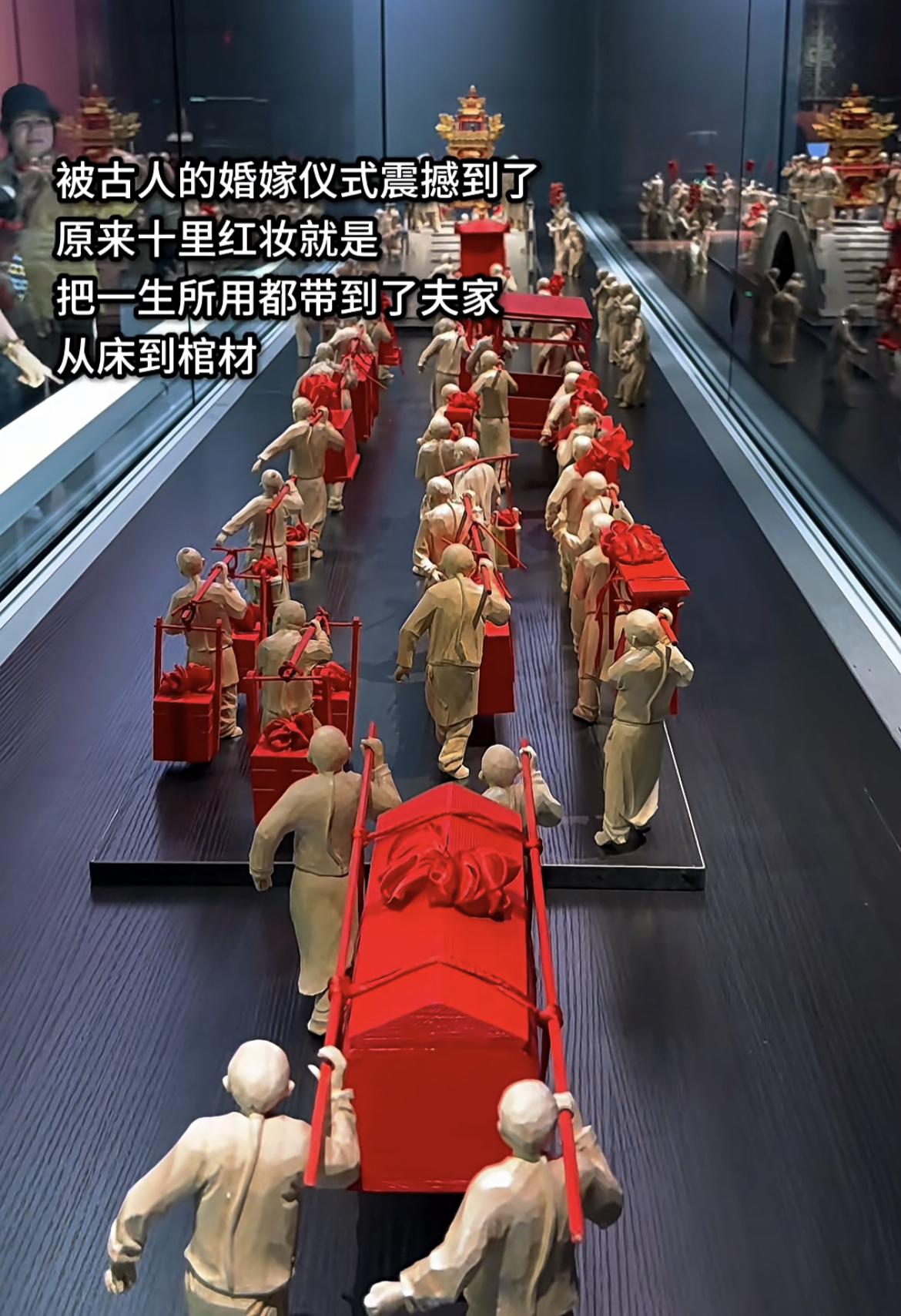 古代的顶级婚嫁仪式之一“十里红妆”:“红床开路,棺材压阵,生死一世,十里尽显”。 这是将出嫁女子的一生所用都带到了夫家,表现出了很大程度上的重视,古人在讲究这方面确实不一般啊。 嫁娶风俗 出嫁 古人
