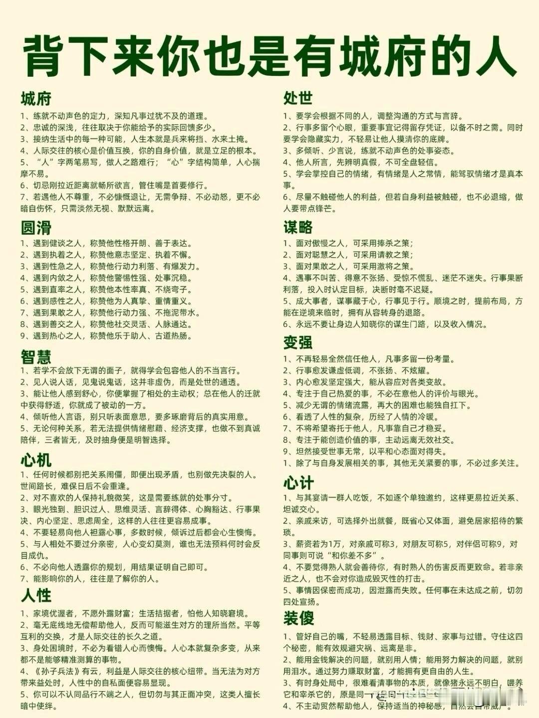 背下来,你也是有城府的人。[祈祷]一个人想变强,本质上就是少干蠢事,多干点聪明事。可现实是,很多人不是不聪明,而是太急着证明自己聪明了。 真正经历过事的人,脸上是看不出来情绪的。 很多人栽在不懂人性。人性其实很简单:爱听好话,不爱担责任,永远觉得自己对,看不得别人好。 你不能要求人人都高尚。把人想得太好,早晚吃亏。把人想得太坏,日子没法过。就事论事,利益面前别谈感情。[捂脸] 变强不是多能算计,而是该忍的时候忍得住,该出手的时候绝不含糊。 对此,评论区各位朋友怎么看?看懂人内心深处 职场城府深
