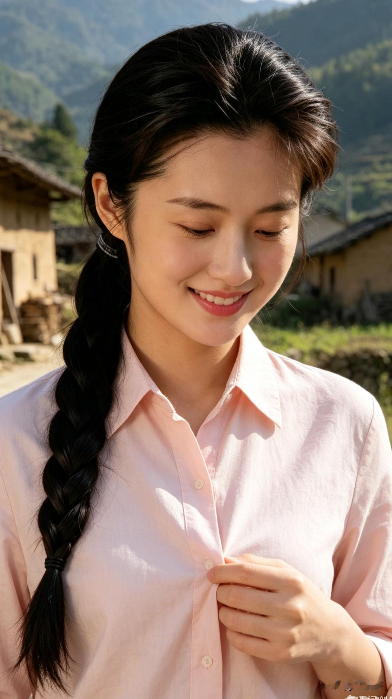 在偏僻的大山村里,居然看到一位留着麻花辫的姑娘了,现在真的很难看到了。