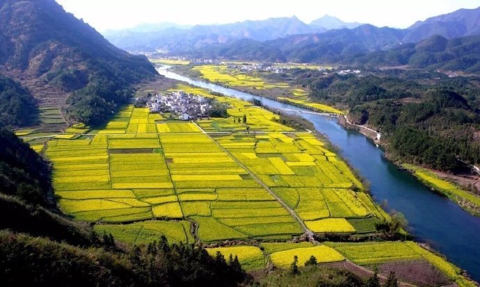 安徽·昌溪,山高田广,阡陌如绣,白墙黑瓦,鳞次栉比,就像一幅素雅又恬静的春天图。