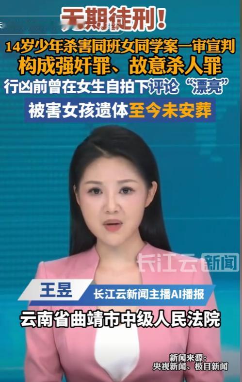 2026年4月28日,一则一审宣判结果刷屏全网,云南法院公开对14岁少年蒋某某故意杀人、强奸一案作出判决,以故意杀人罪、强奸罪数罪并罚,判处蒋某某无期徒刑,剥夺政治权利终身。因故意杀人罪犯罪时不满十八周岁,依法不适用死刑。 这起备受社会关注的案件,终于迎来了一审定论,却并未平息公众的愤慨与惋惜,尤其是被害女孩方某某的遗体至今仍未安葬…… 这起悲剧发生在2025年7月6日晚至7日凌晨,一段本该普通的夜晚,却成了方某某生命的终点。 事发当晚,独自在家的方某某接到同班女同学的电话,对方再三劝说,邀请她前往自己堂哥家玩耍。起初方某某并未同意,最终在对方的反复邀约下,才答应去玩一会儿就回家。可她万万没有想到,这一去,就再也没能回到那个她独自打理、充满烟火气的家。 方某某抵达女同学堂哥家后,发现同班男生蒋某某也在现场。大约一个小时后,方某某和同行的女同学提出要回家,蒋某某主动提出护送二人。他先将同行的女同学安全送回家,随后便独自护送方某某,而就是这段短短的回家路,成为了悲剧的开端。 根据法院审理结果,蒋某某在护送方某某途中,采用暴力手段企图对其实施奸淫,遭到方某某的反抗后,蒋某某为了掩盖罪行,竟残忍地用双手掐住方某某的颈部,直至其失去生命体征。 行凶之后,蒋某某并未表现出丝毫慌乱,反而将方某某的遗体拖行200多米,在听到有车辆路过的声音后,匆忙将遗体丢弃在路边,随后逃离现场。 值得关注的是,在这起悲剧发生之前,蒋某某曾在方某某的自拍留言区评论“漂亮”,这一细节被网友挖出后,更让人不寒而栗。 没有人知道,这句看似普通的评论背后,隐藏着怎样的恶意,也没有人能预料到,这份恶意最终会酿成无法挽回的悲剧。 案发当晚,当地两名16岁左右的少年骑车回家时,发现了路边躺着的方某某,他们第一时间联系了家长,家长随即拨打了110报警。 民警赶到现场前,村里的调解员带着医生先前往查看,而医生抵达后,确认方某某已经没有了生命体征,其颈部的掐痕清晰可见,足以看出行凶时的残忍。 由于事发在深夜,且现场位于行人稀少的路段,警方迅速展开调查,很快便锁定了犯罪嫌疑人蒋某某。 让人震惊的是,案发后第二天上午,蒋某某还像往常一样,跟着家人外出捡拾蘑菇,言行举止没有丝毫异常,直到中午时分,才被民警依法带走。 据了解,蒋某某的父母常年在海南打工,他平时跟随奶奶在家生活,案发前几天,其母亲曾短暂回到老家。 而被害女孩方某某同样是一名留守少年,父母也在海南的建筑工地打工,她独自在老家上学,周末回家后,洗衣、买菜、煮饭等家务都由她自己承担,邻居们对她的评价都是乖巧、懂事、独立,这样一个善良的女孩,却遭遇了如此不幸。 方某某的父亲在接受采访时,难掩悲痛,他表示,自己和妻子得知女儿遇害的消息后,如遭雷击,连夜赶回老家,在殡仪馆看到女儿的遗体时,早已悲痛到失声痛哭。 他还透露,案发几天后,蒋某某的家人曾带着礼物来到他家赔礼道歉,但他坚决拒绝了,在他看来,女儿的生命无法用道歉弥补,他只希望能依法严惩凶手。 截至一审宣判,方某某的遗体依然存放在殡仪馆,尚未安葬。对于一个家庭而言,亲人离世后入土为安,是最后的慰藉,可方某某的父母却迟迟无法完成这份心愿,他们在等待一个公平公正的结果,也在承受着失去女儿的无尽痛苦。 曲靖市中级人民法院在审理后认为,蒋某某的行为已分别构成强奸罪、故意杀人罪,犯罪情节特别恶劣,后果严重,依法应予以严惩。 但考虑到蒋某某犯罪时不满十八周岁,根据法律规定,不适用死刑,结合其犯罪事实、性质、情节和对社会的危害程度,最终作出了无期徒刑的判决。 从法律层面来说,这一判决有着明确的法律依据。 根据最高人民法院相关解释,已满十四周岁不满十六周岁的人,犯故意杀人、强奸等罪行的,应当负刑事责任,而未成年人犯罪只有罪行极其严重的,才可以适用无期徒刑,对已满十四周岁不满十六周岁的人犯罪一般不判处无期徒刑,足以看出蒋某某的罪行之严重。 这起案件不仅让两个家庭陷入了无尽的痛苦,也再次引发了公众对未成年人犯罪的广泛关注。 14岁,本该是被保护的年纪,却有人用最残忍的方式,剥夺了同龄人的生命,这份恶意背后,是家庭教育的缺失,还是青春期心理的扭曲,值得每一个人深思。 我们无法想象,方某某在生命的最后一刻,经历了怎样的恐惧与绝望;也无法体会,她的父母在失去女儿后,承受着怎样的煎熬与痛苦。 一审判决虽然给了受害者家属一个初步的交代,但方某某的遗体仍未安葬,这场悲剧的影响也远未结束。 愿法律能守住公平正义的底线,给受害者及其家属一个圆满的交代,也愿每一个未成年人都能被正确引导,远离暴力与犯罪,愿这样的悲剧,不再重演。