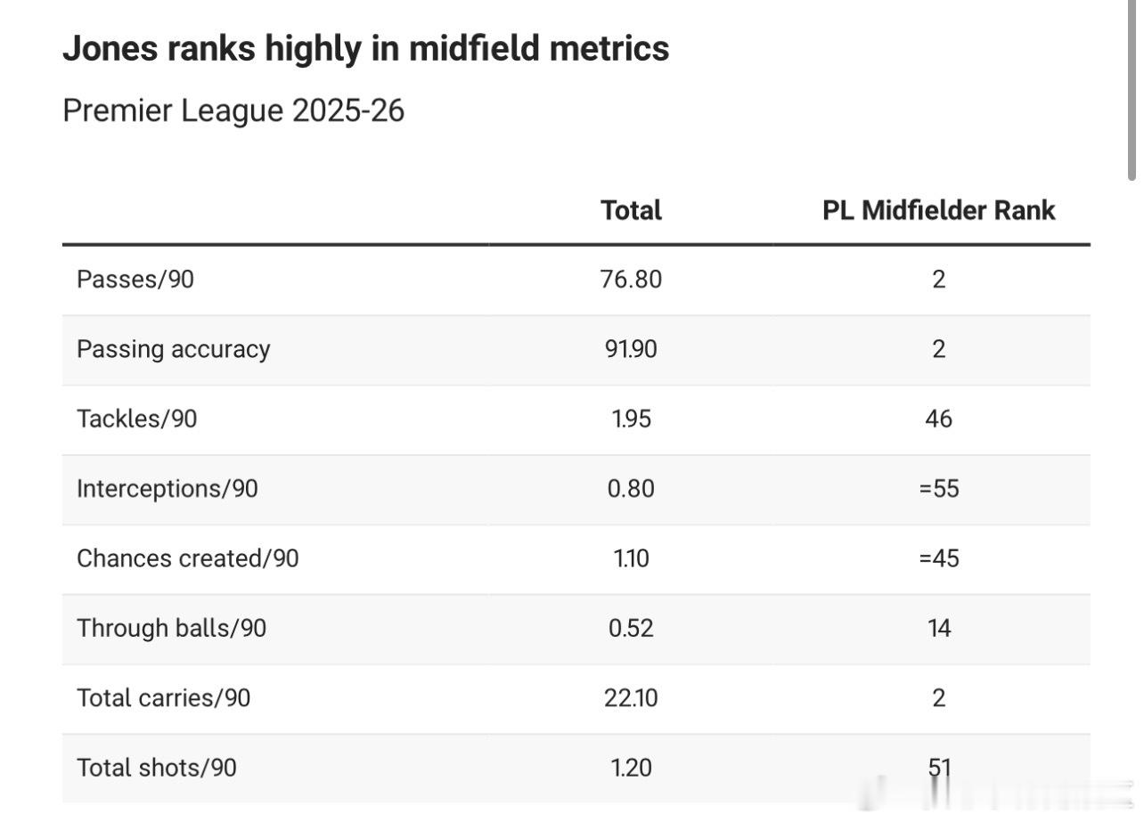 两大跟队分别就琼斯和阿利森发了篇文章乔伊斯那边关于琼斯的文章有意思,他先来了一个问题。如果利物浦目前正在追一个本赛季中场传球数仅次于罗德里,传球成功率仅次于凯塞多以及带球次数仅次于切尔基的中场那利物浦球迷现在是什么反应?别想太多,这是你琼皇本赛季的数据。冬窗的时候热刺就考虑过琼斯只不过最后选择了加拉格尔。国米也考虑过租借琼斯包含买断条款,琼斯这两笔转会自己都没有推动。利物浦这边也反对租借。到了夏窗之后,国米可能会重新回来谈琼斯,有传闻说维拉也在关注琼斯。我军在夏窗也必须要考虑是否值得在这个夏窗卖掉琼斯。