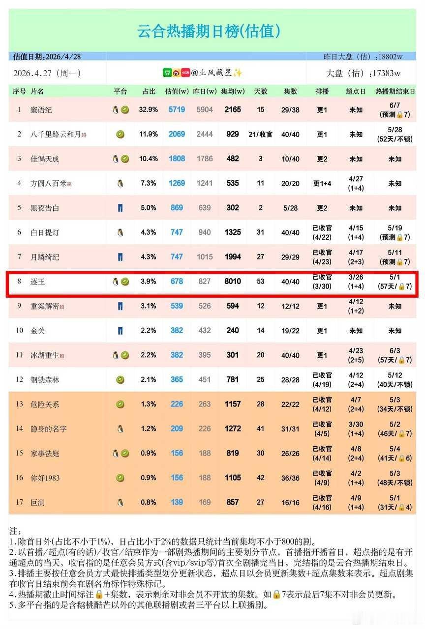 张凌赫田曦薇《逐玉》热播期成绩:2020年云合改版以来总榜第九,女频史冠🔥2025年至今年冠,第一部进入8000俱乐部的女频剧,进入8000俱乐部的95生花。🔥抖指史冠,抖热史亚,出海第一。🔥
