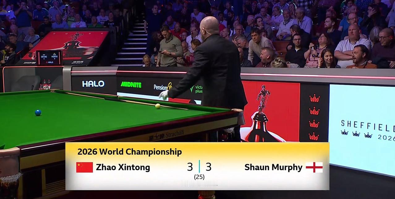 墨菲真的是很难缠的对手,在赵心童一度3:0领先的情况下,连追3局,最终双方打成3:3,在打红球一次进攻中墨菲连续实验多次终于打进!赵心童也是出现一些失误!