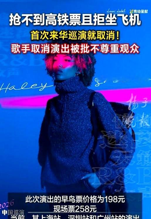 你见过坐了15小时国际航班落地后突然说自己“恐飞”的歌手吗? 加拿大女歌手海莉这事儿简直让人哭笑不得,北京站票都卖光了,她却因为不肯坐北京到上海两小时的飞机而取消演出。 说白了,她那“恐飞”是选择性发作,五一抢高铁票的难度堪比春运,主办方愣是没抢到,只能全额退款自己扛损失。 最惨的还是那些歌迷,调休、订酒店、抢车票,满怀期待扑了个空,手里就剩一张冰冷的退款通知。 这事儿给跨国演出敲了警钟,预案得做足,不然下次主办方恐怕自己先“恐艺人”了。 你们觉得,要是你翘课调休去看的演出被取消,能接受的理由底线是什么?