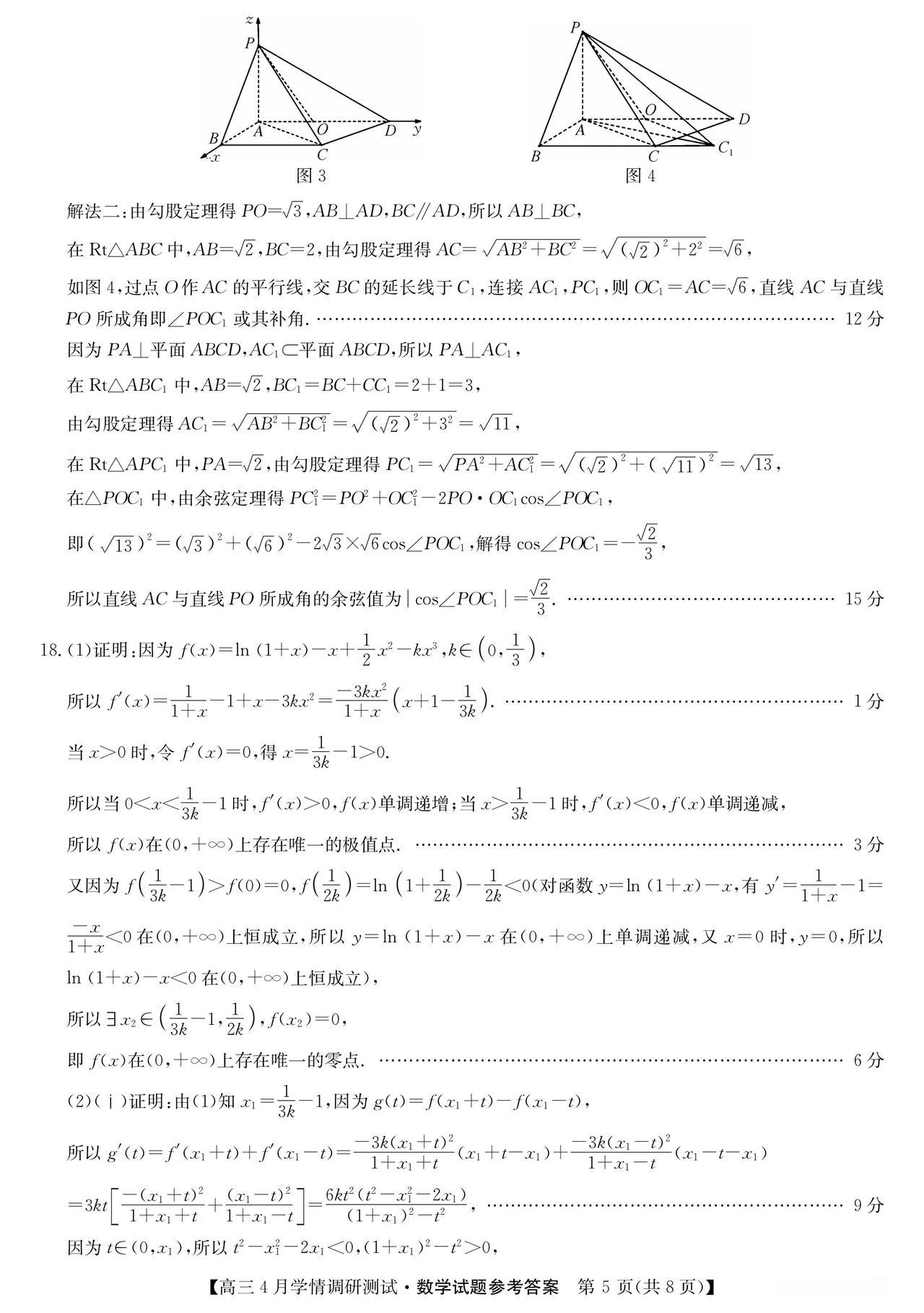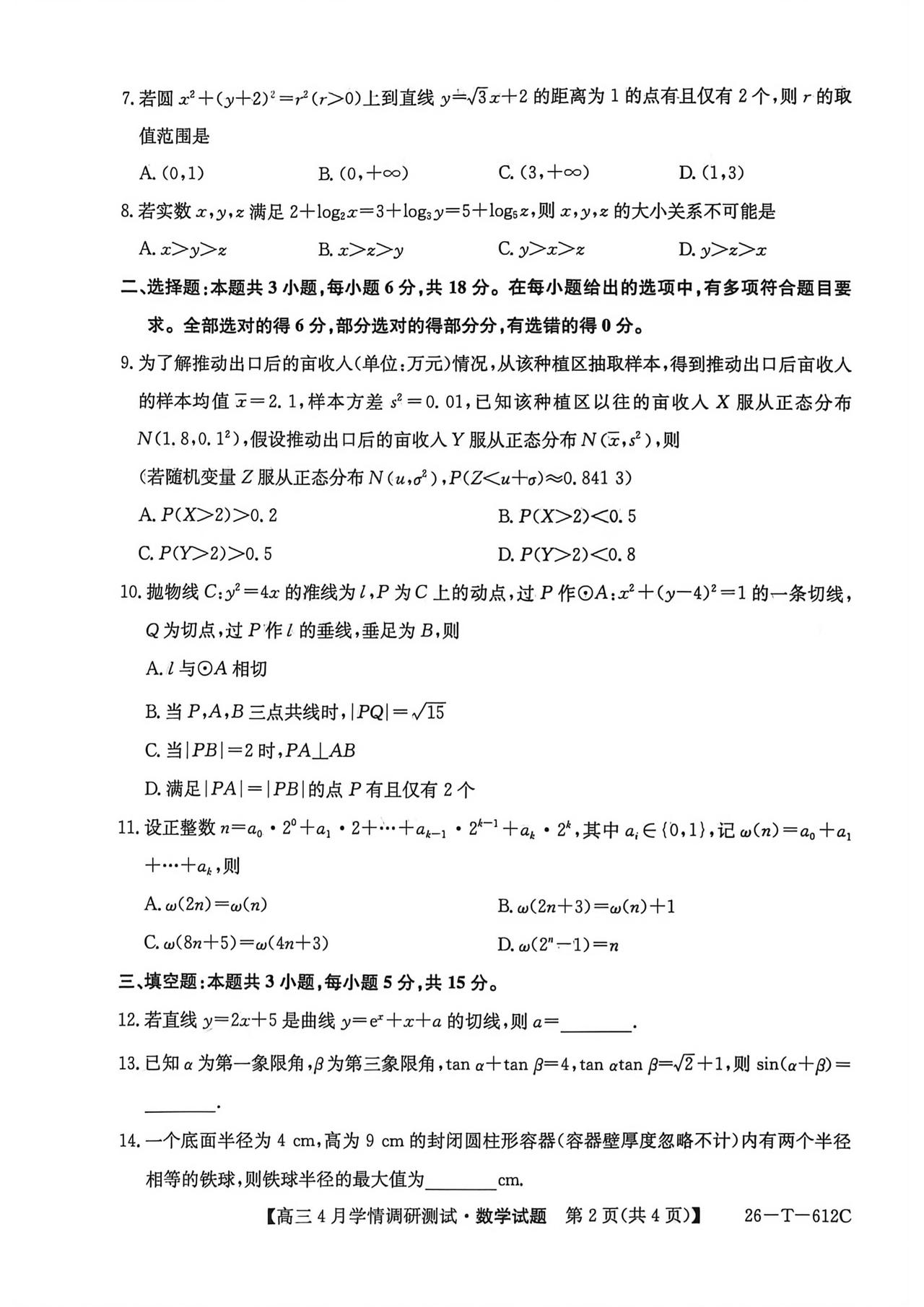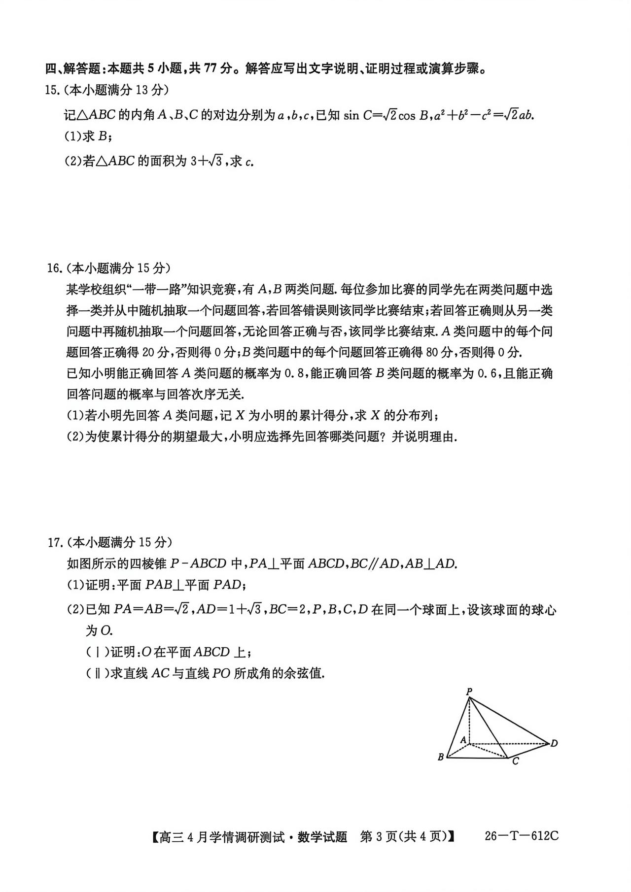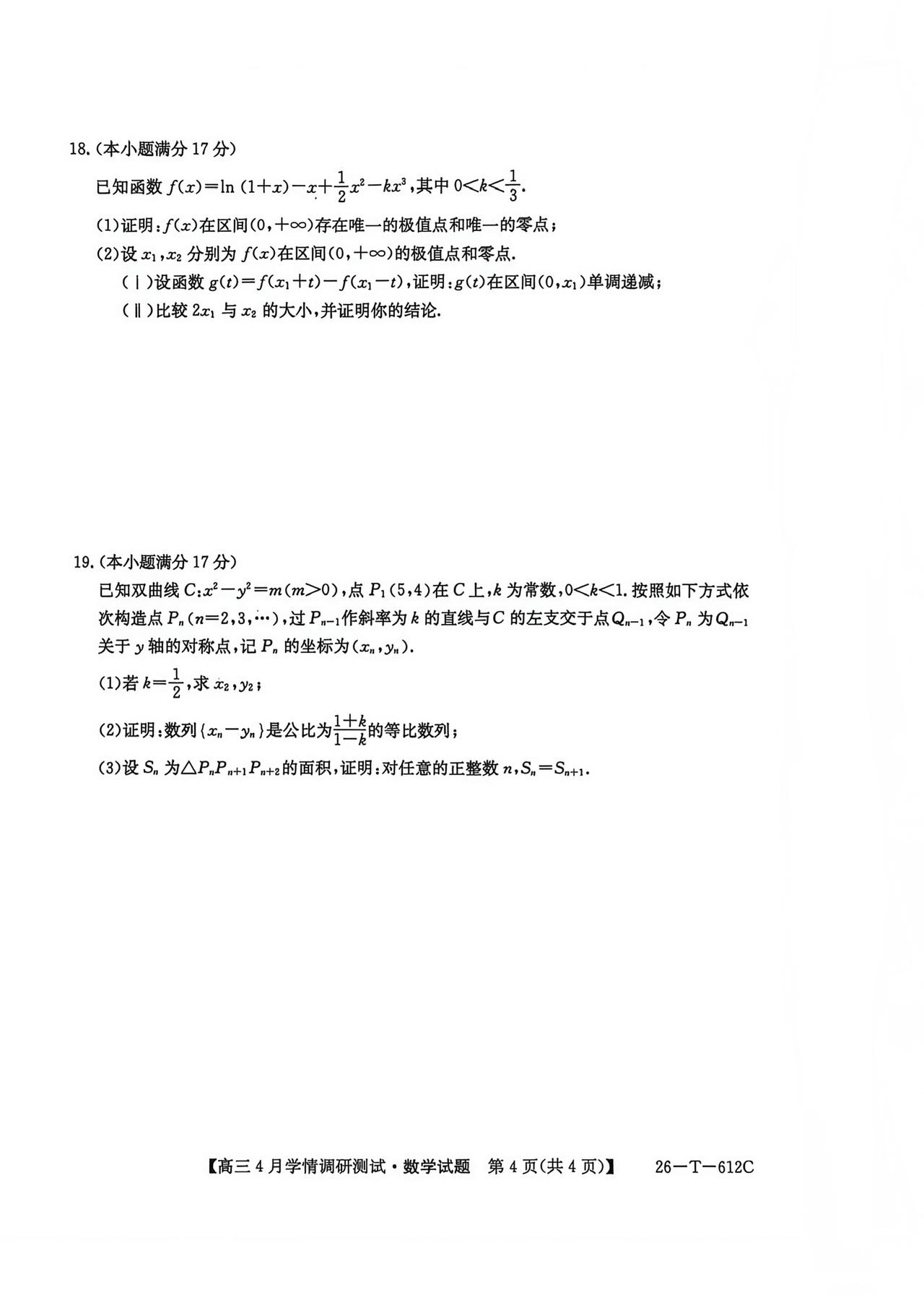安徽省埠阳市2026届高三4月调研测试数学试题及答案