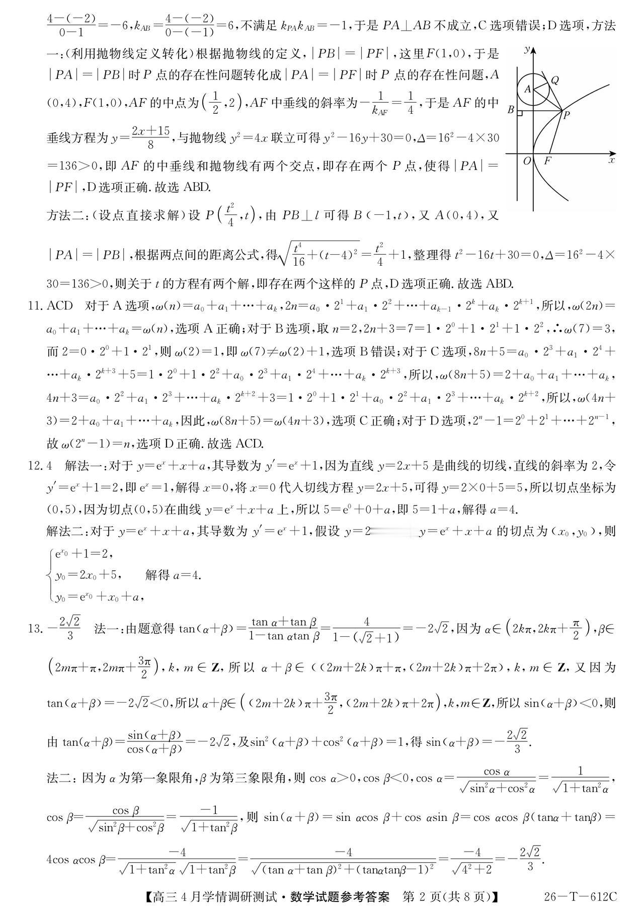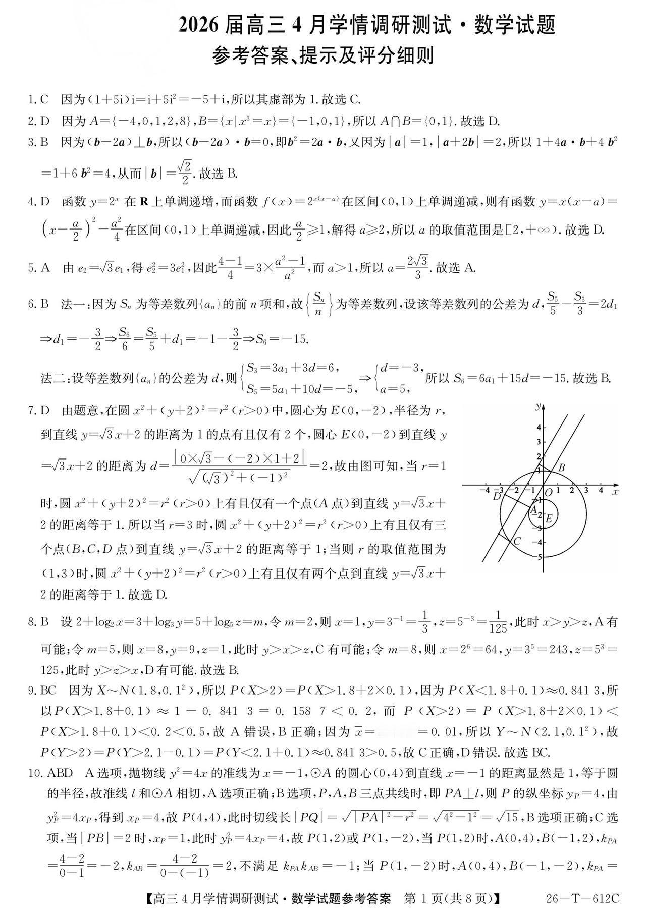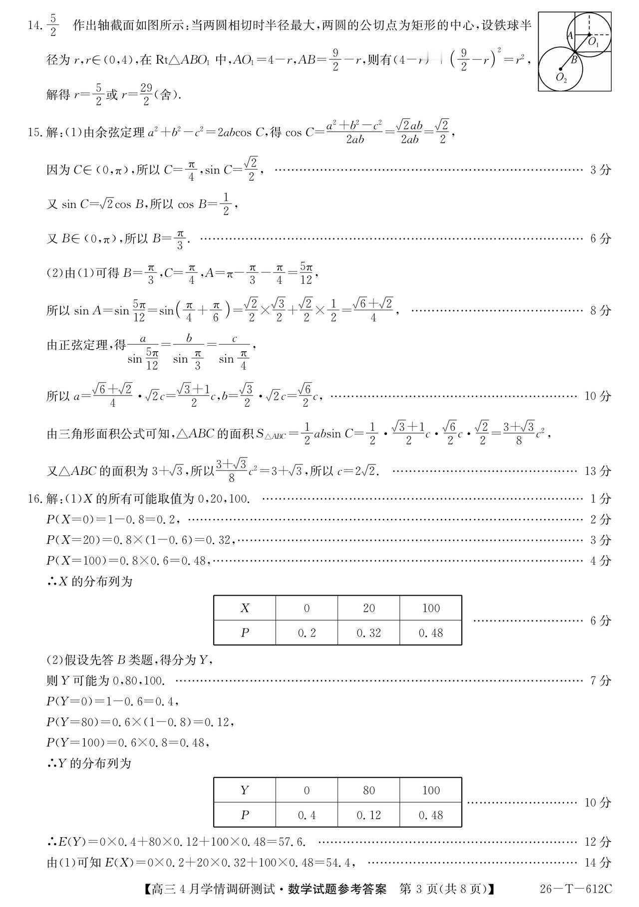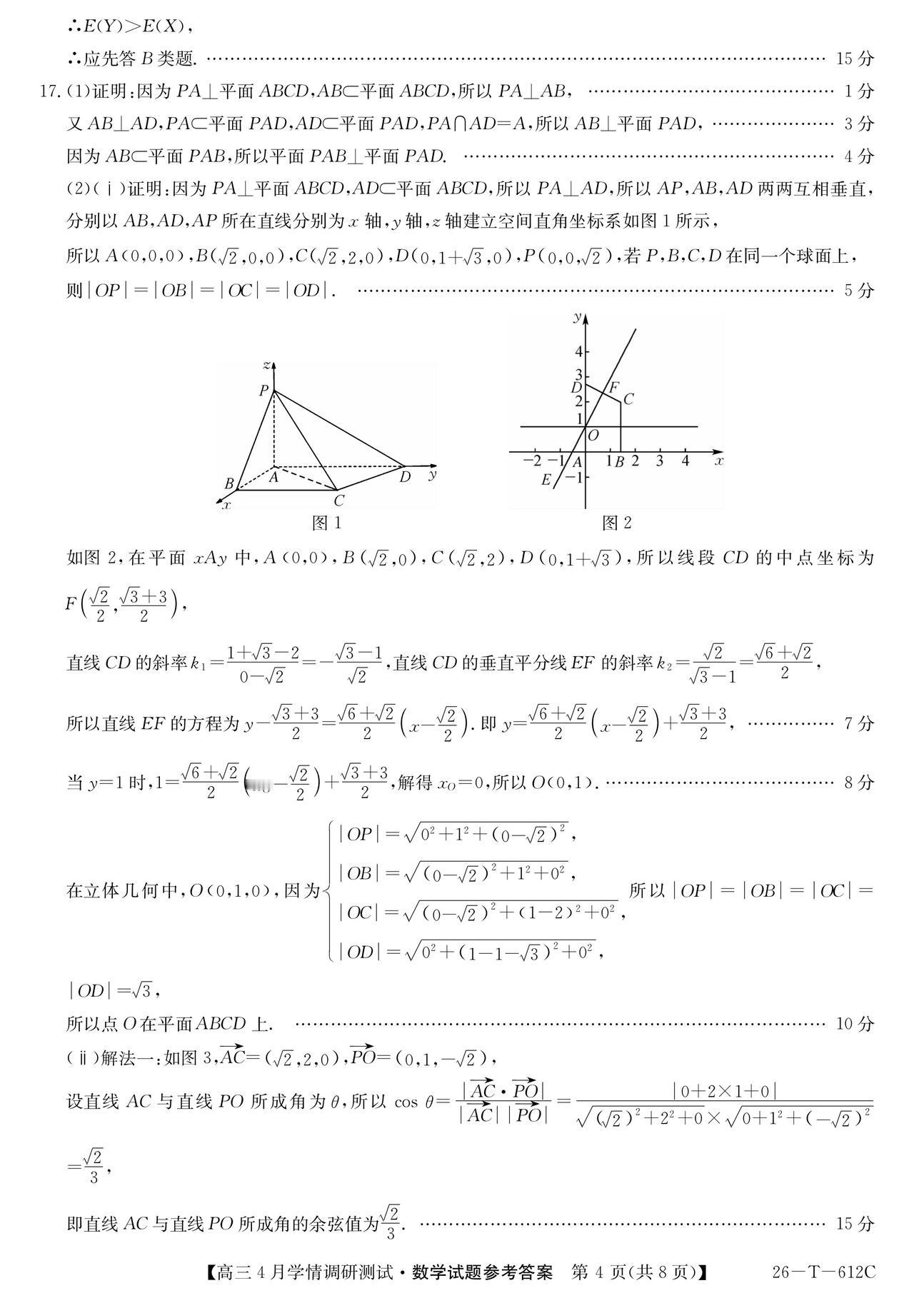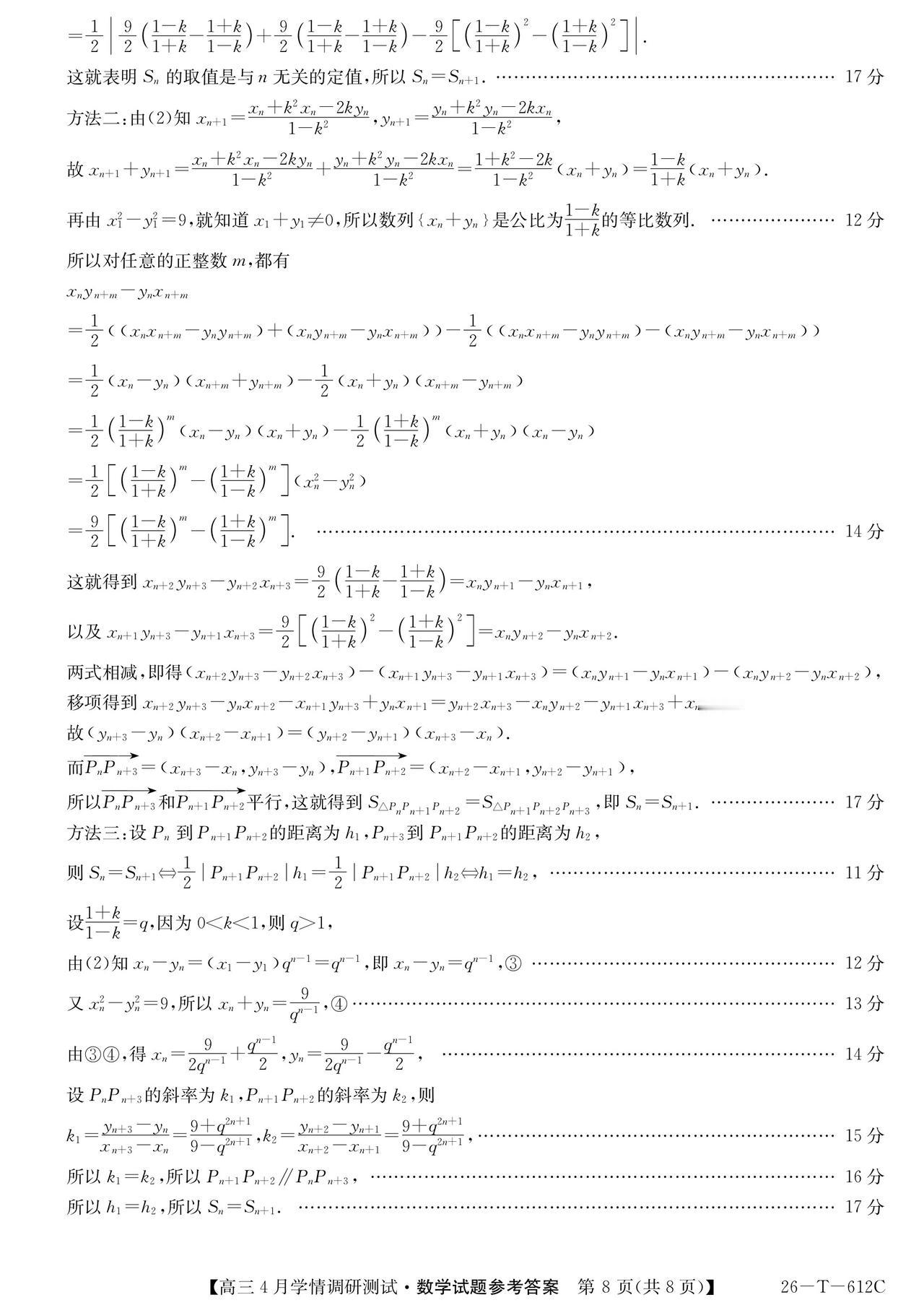 安徽省埠阳市2026届高三4月调研测试数学试题及答案