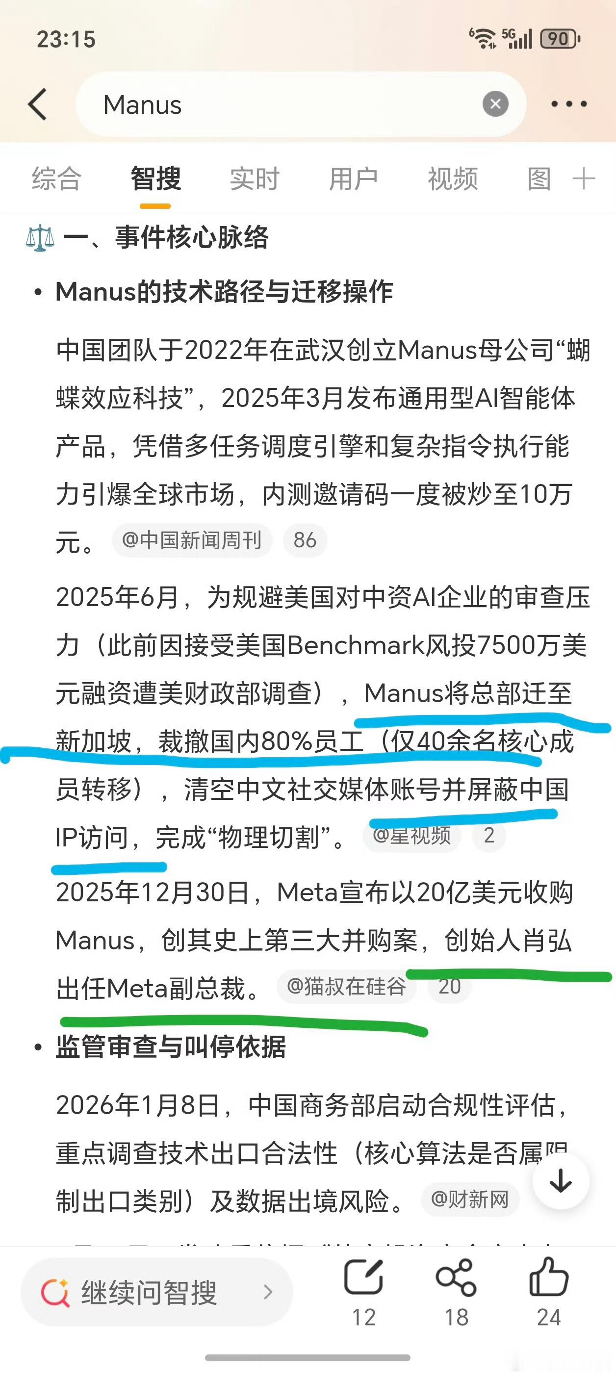 这种在中国诞生的团队,去中国化,痕迹非常明显,这样的公司真的还是不在的话,一个诞生在中国的公司搞去中国化,真的和假洋鬼子有什么区别Manus曾裁近七成员工manus曾裁近七成员工