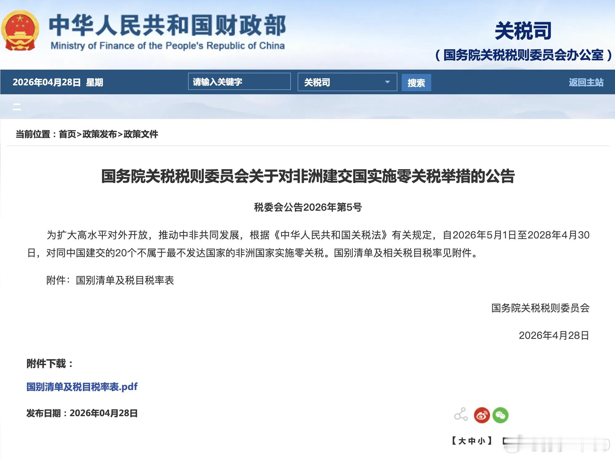 我国自2026年5月1日起对所有非洲建交国实施零关税