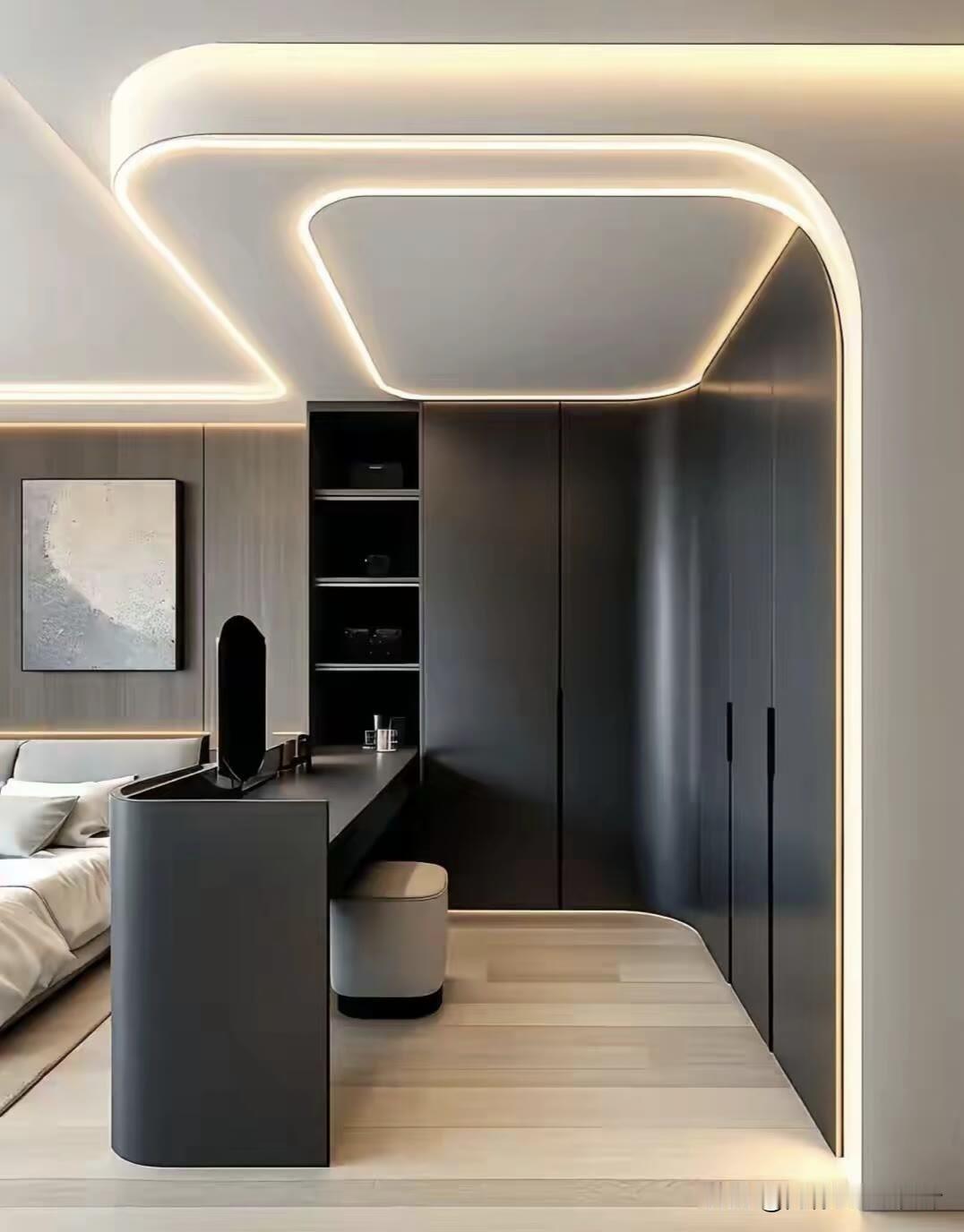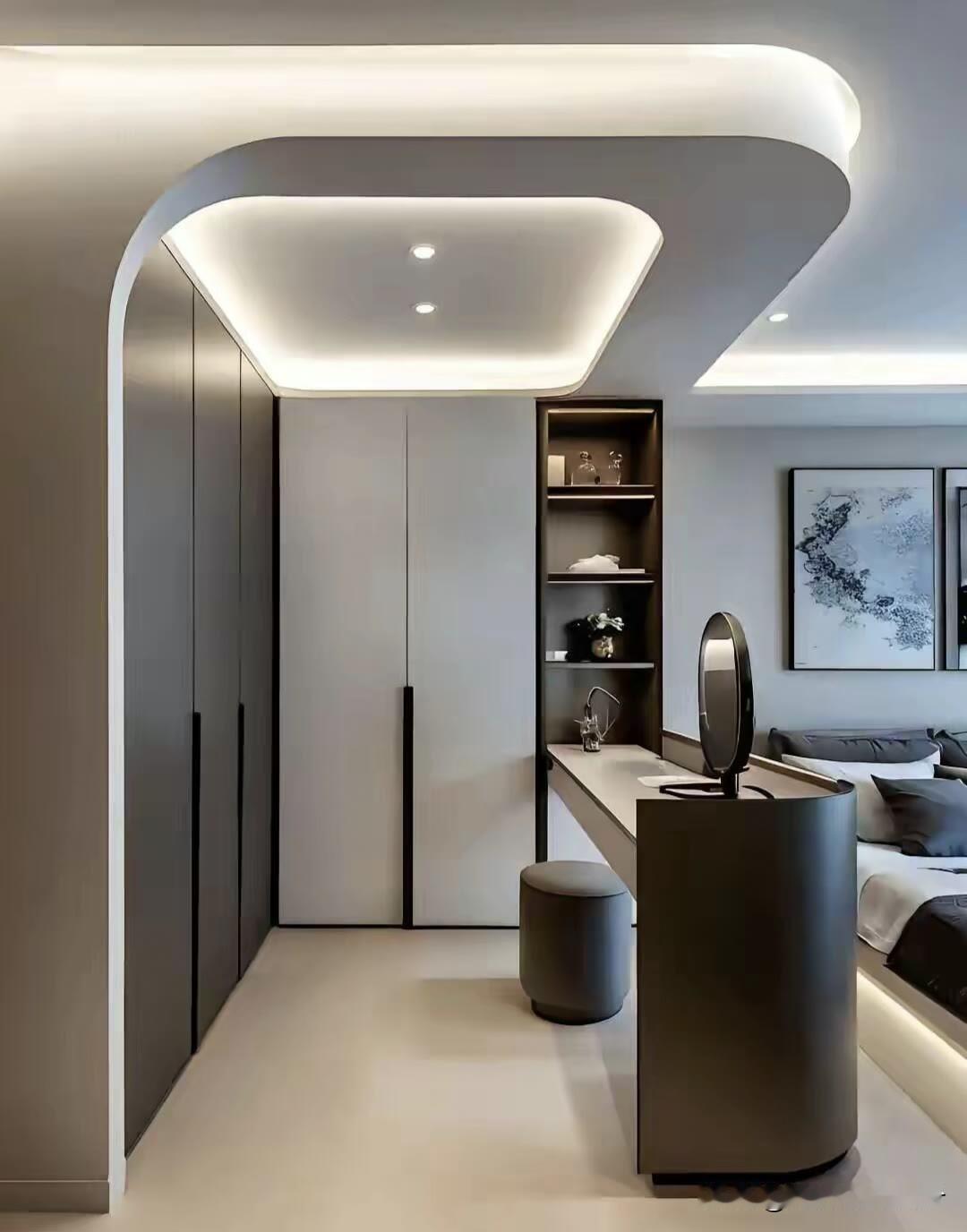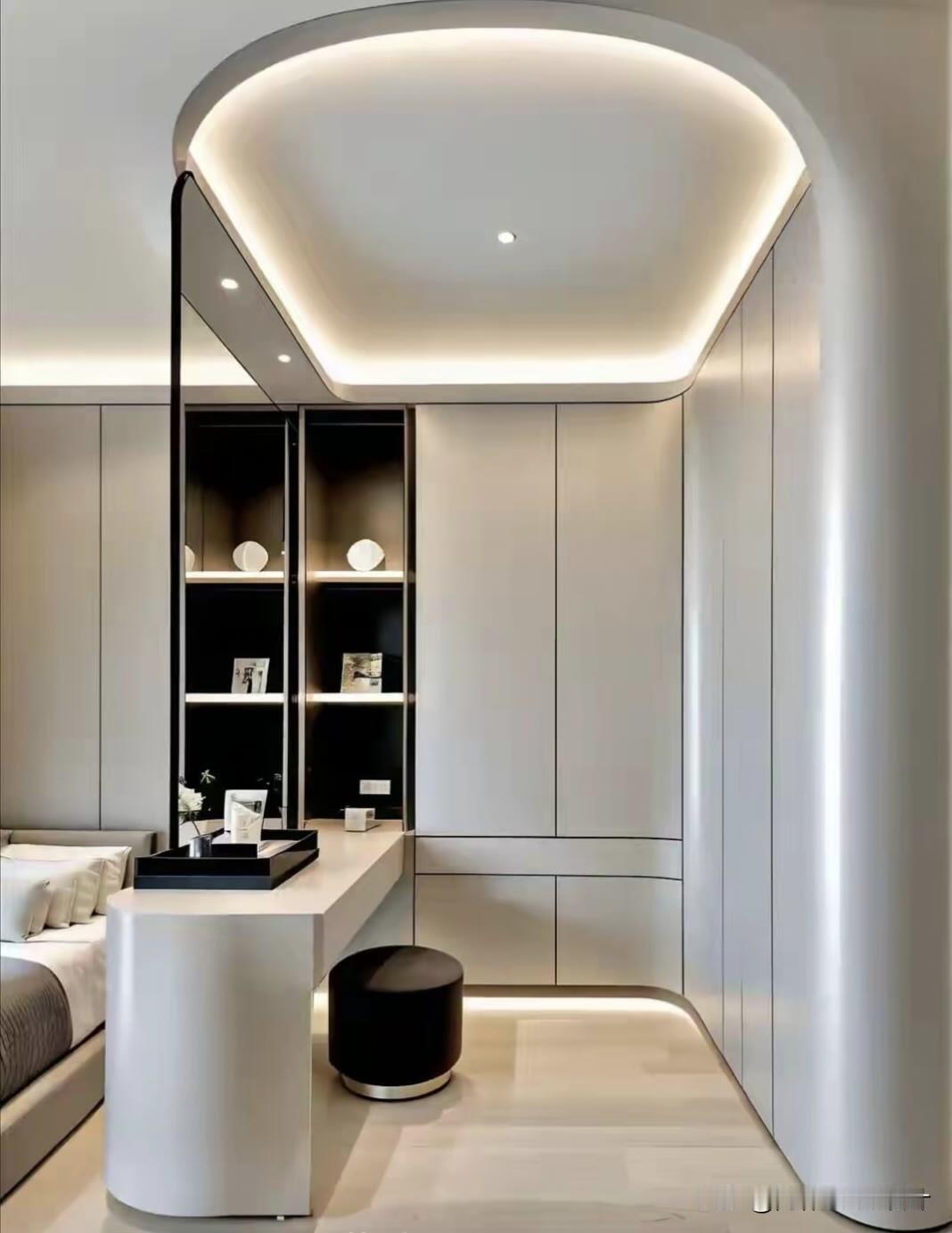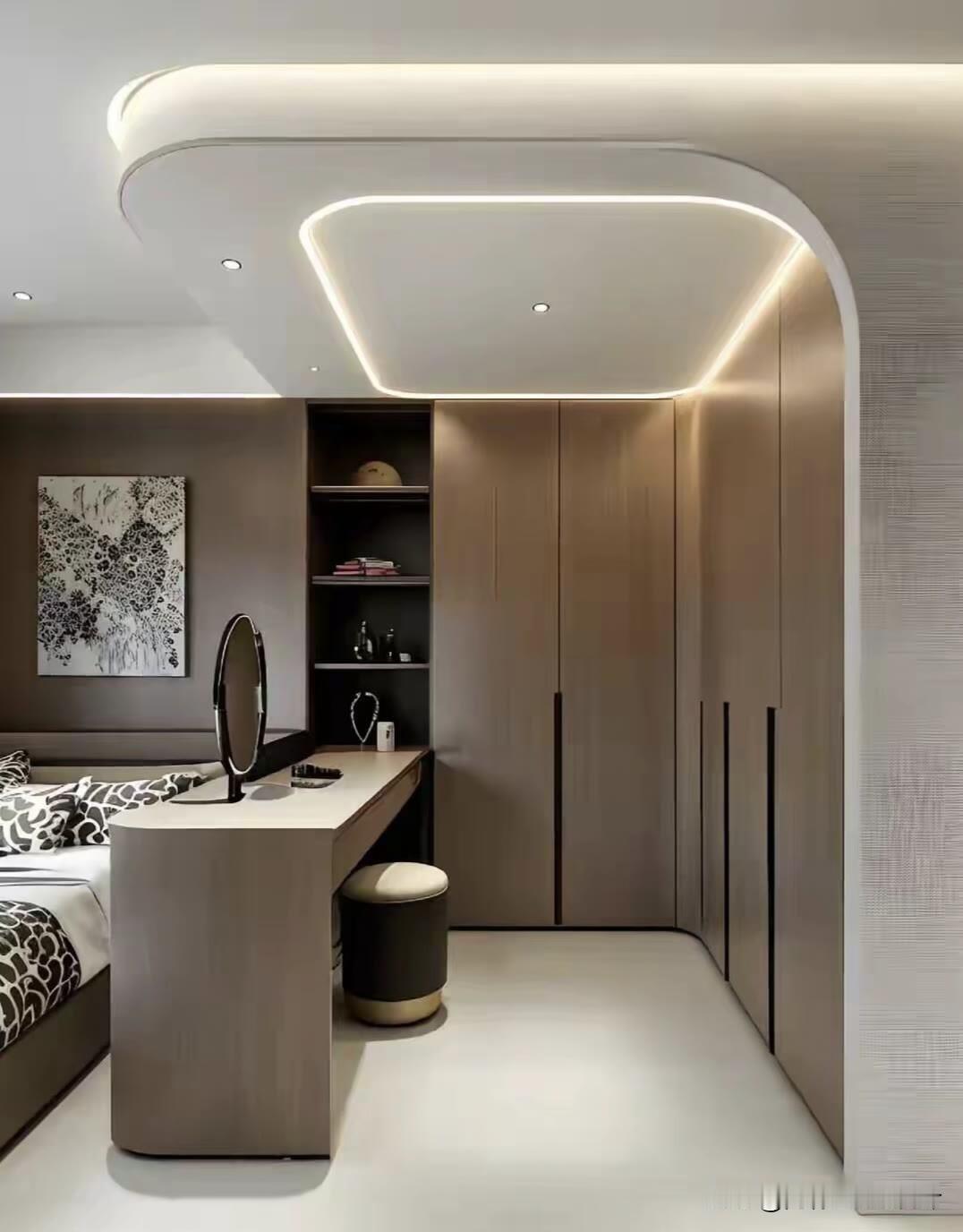 衣帽间怎么做,才能有高级感? 衣帽间高级感做法(直接照抄落地) 1. 颜色:少色、哑光、低饱和 - 主色:白/浅灰/奶咖/暖灰 选一种 - 柜门:无拉手(反弹器/隐形拉手/下挂) - 禁止:亮面、复杂花纹、多色混搭 2. 灯光:见光不见灯 - 柜内:层板下线性灯(4000K暖白) - 衣杆:感应灯带 - 避免:直射刺眼、只装一个顶灯 3. 布局:干净利落、少杂乱 - 挂衣区>叠放区(7:3) - 长衣区、短衣区分开,高度统一 - 叠放区用抽屉/收纳盒,不要裸堆 - 留一块空台面(放首饰、香水) 4. 材质:统一、细腻 - 柜门:PET平贴/肤感膜 - 柜体:同色系或浅一点 - 玻璃门:灰玻/茶玻,不要透明清玻 5. 细节决定高级 - 踢脚线、收口同色隐形 - 五金:哑光黑/拉丝金,别用亮铬 - 镜子:全身镜内嵌/侧装,不要突兀 - 地面:木地板/同色系地砖,更柔和 6. 极简收尾 - 不要过多装饰、包包公仔外露 - 统一衣架颜色(黑/白/原木)