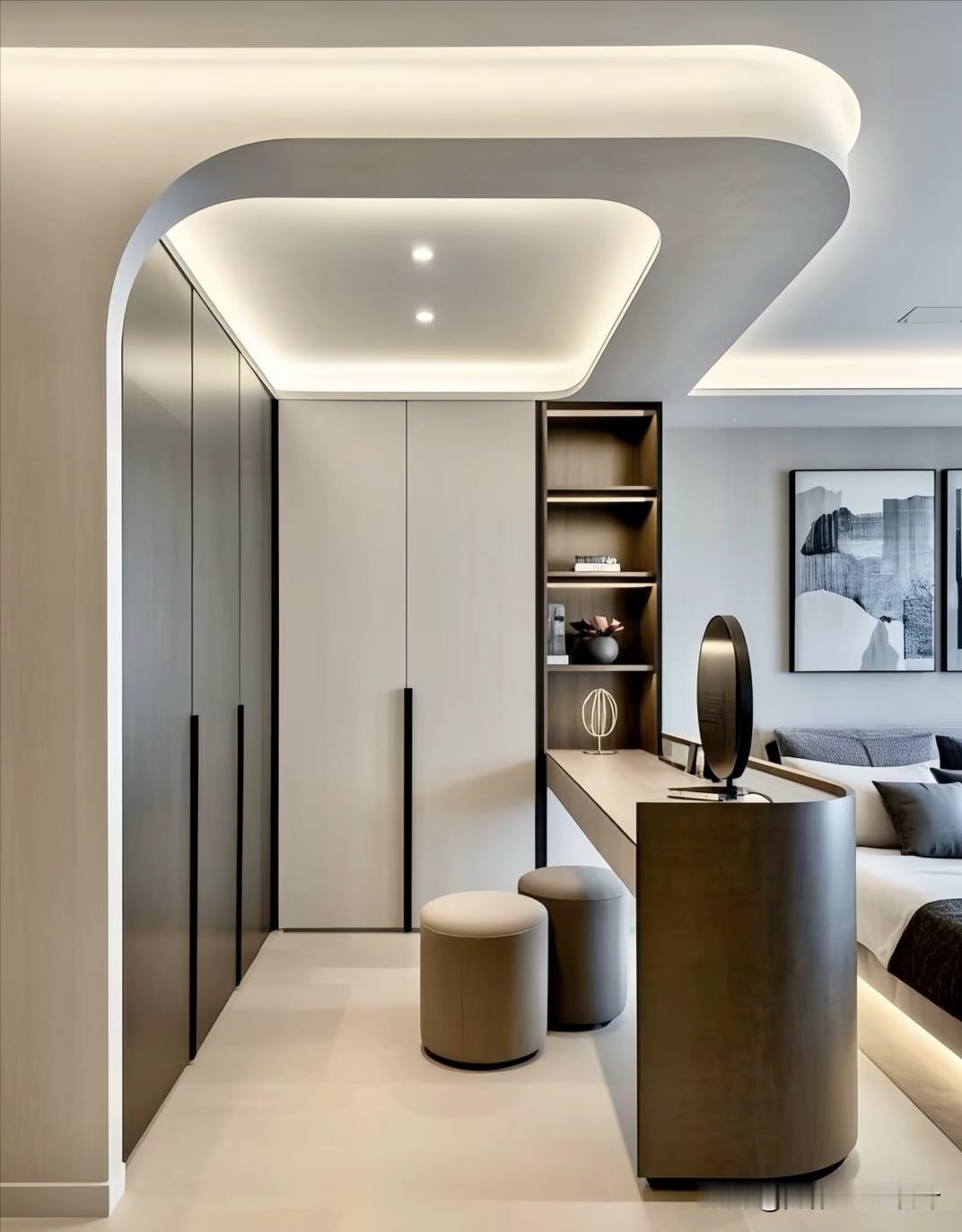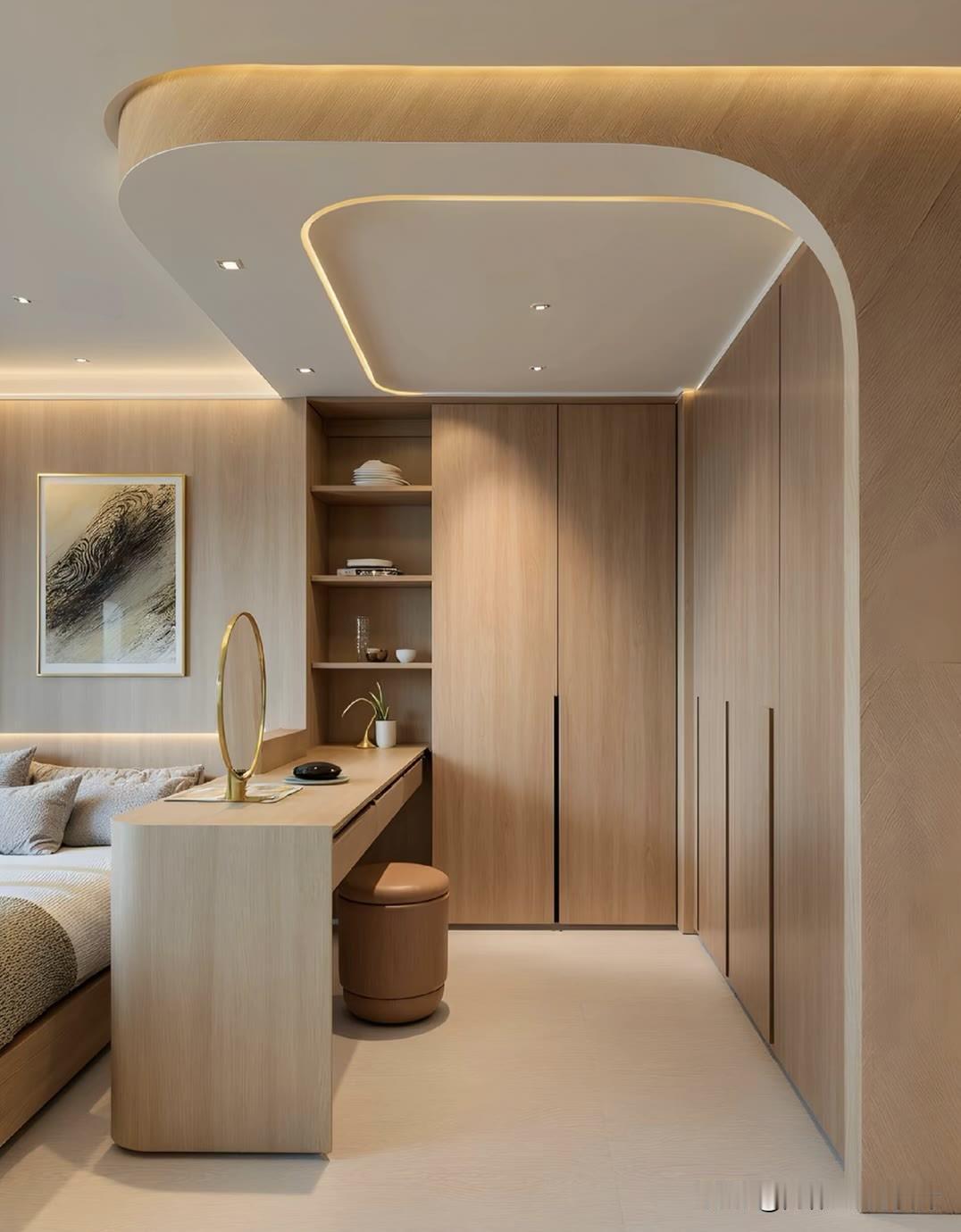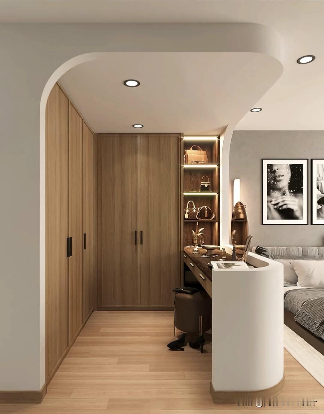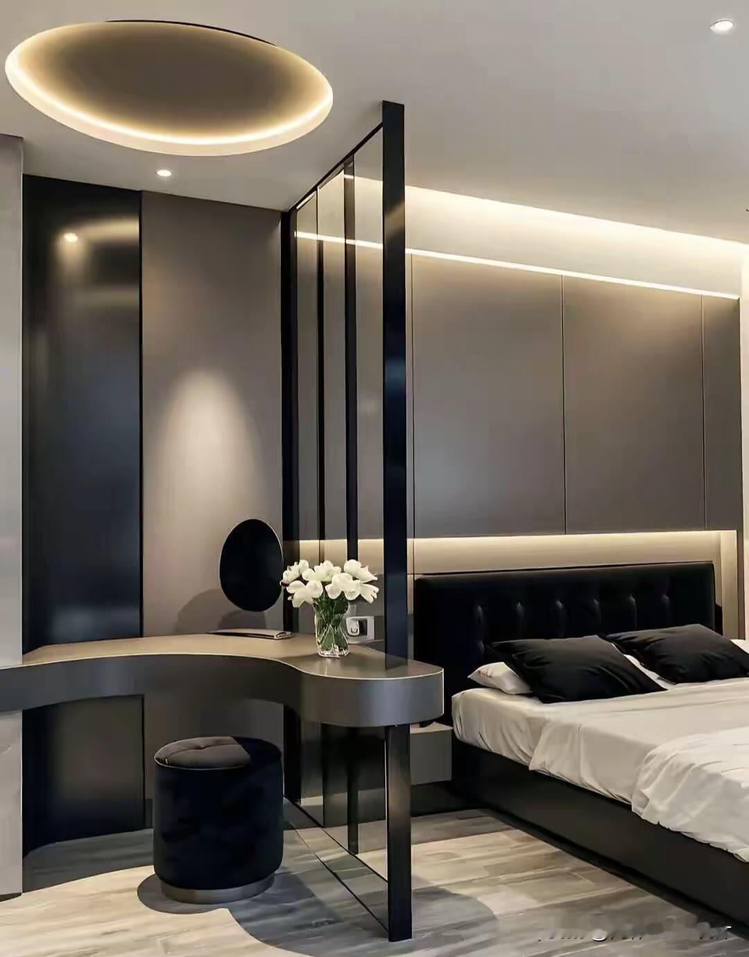衣帽间怎么做,才能有高级感? 衣帽间高级感做法(直接照抄落地) 1. 颜色:少色、哑光、低饱和 - 主色:白/浅灰/奶咖/暖灰 选一种 - 柜门:无拉手(反弹器/隐形拉手/下挂) - 禁止:亮面、复杂花纹、多色混搭 2. 灯光:见光不见灯 - 柜内:层板下线性灯(4000K暖白) - 衣杆:感应灯带 - 避免:直射刺眼、只装一个顶灯 3. 布局:干净利落、少杂乱 - 挂衣区>叠放区(7:3) - 长衣区、短衣区分开,高度统一 - 叠放区用抽屉/收纳盒,不要裸堆 - 留一块空台面(放首饰、香水) 4. 材质:统一、细腻 - 柜门:PET平贴/肤感膜 - 柜体:同色系或浅一点 - 玻璃门:灰玻/茶玻,不要透明清玻 5. 细节决定高级 - 踢脚线、收口同色隐形 - 五金:哑光黑/拉丝金,别用亮铬 - 镜子:全身镜内嵌/侧装,不要突兀 - 地面:木地板/同色系地砖,更柔和 6. 极简收尾 - 不要过多装饰、包包公仔外露 - 统一衣架颜色(黑/白/原木)