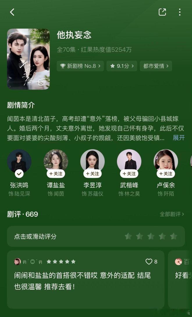 更惊喜的是和谭盐盐的对手戏,完全是互相托着走的状态。女主把闻茴的破碎、坚韧和不甘演得很有层次,而张洪鸣没有被对方的戏压下去,反而接住了每一次对手戏的张力,这种短剧看完好爽!这种势均力敌的演技碰撞,直接把剧的质感拉高了一大截。