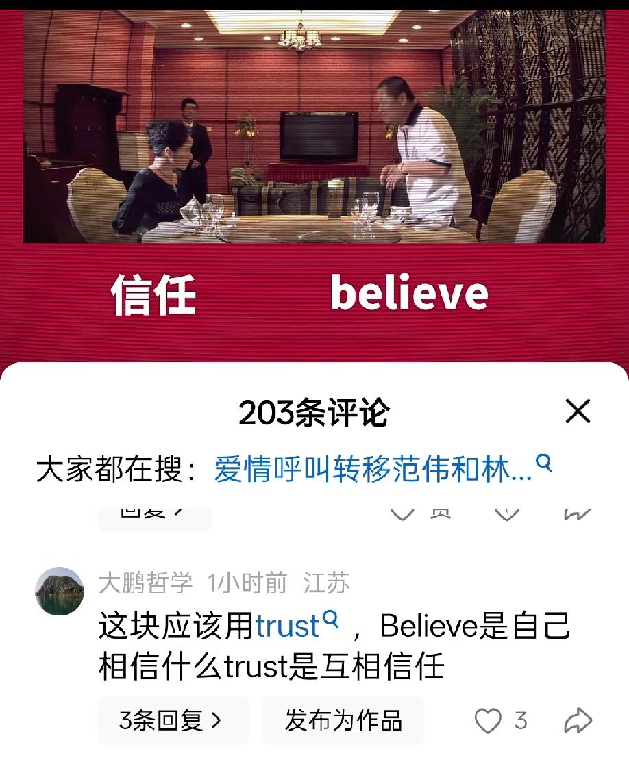 这块应该用trust,Believe是自己相信什么trust是互相信任