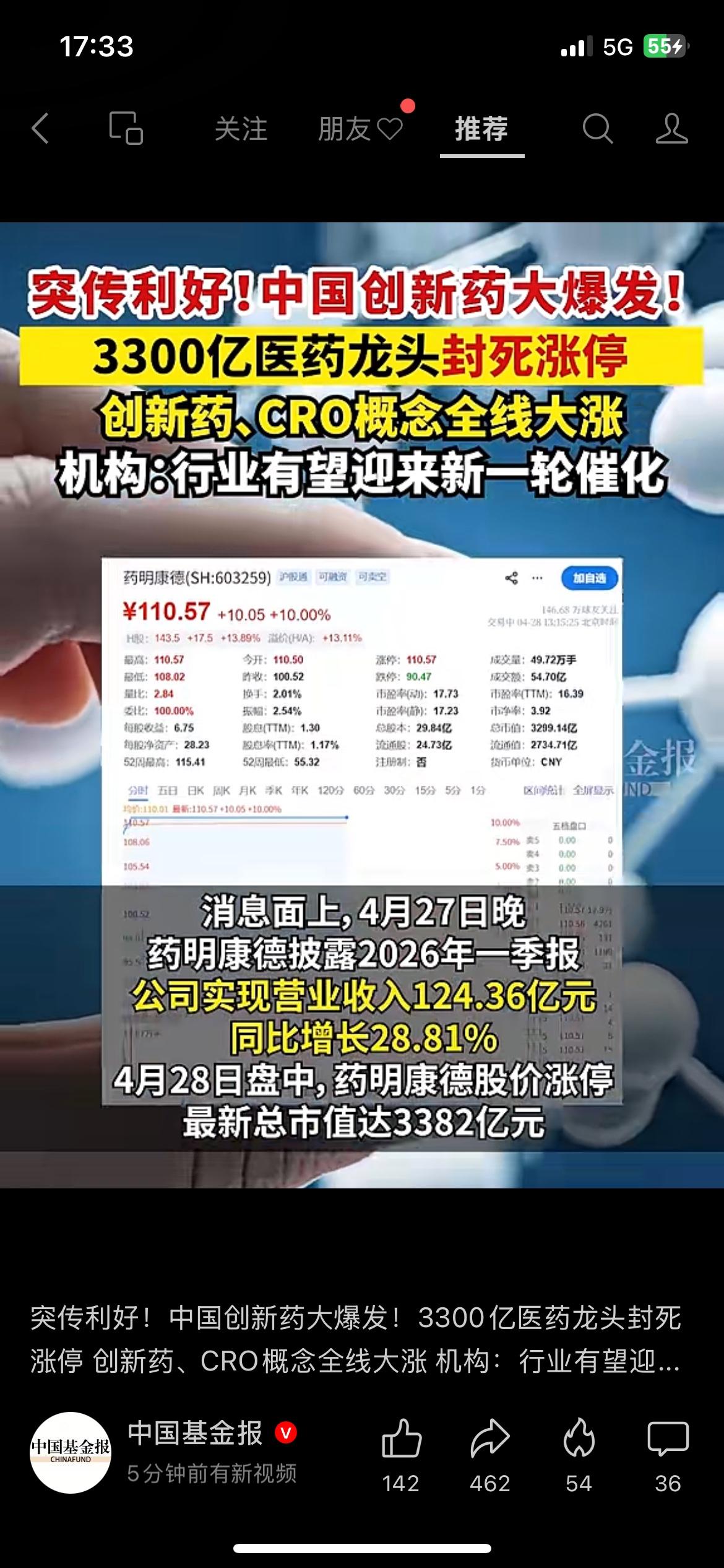 3300亿医药龙头一字涨停,创新药板块集体“回血” 4月28日,A股多只热门股降温,创新药板块却逆势拉升。 3300亿市值的CRO龙头药明康德直接封死涨停,带动整个医药研发板块集体走强。 背后核心原因,是刚披露的一季报营收同比大增28.81%,全面超市场预期。 说白了,市场看到了创新药产业回暖的信号,资金又开始往这个赛道回流了。 对咱们普通人来说,医药板块回暖,也关系到医保、新药研发这些民生大事。 你觉得这波行情,是短期反弹还是长期回暖的开始?