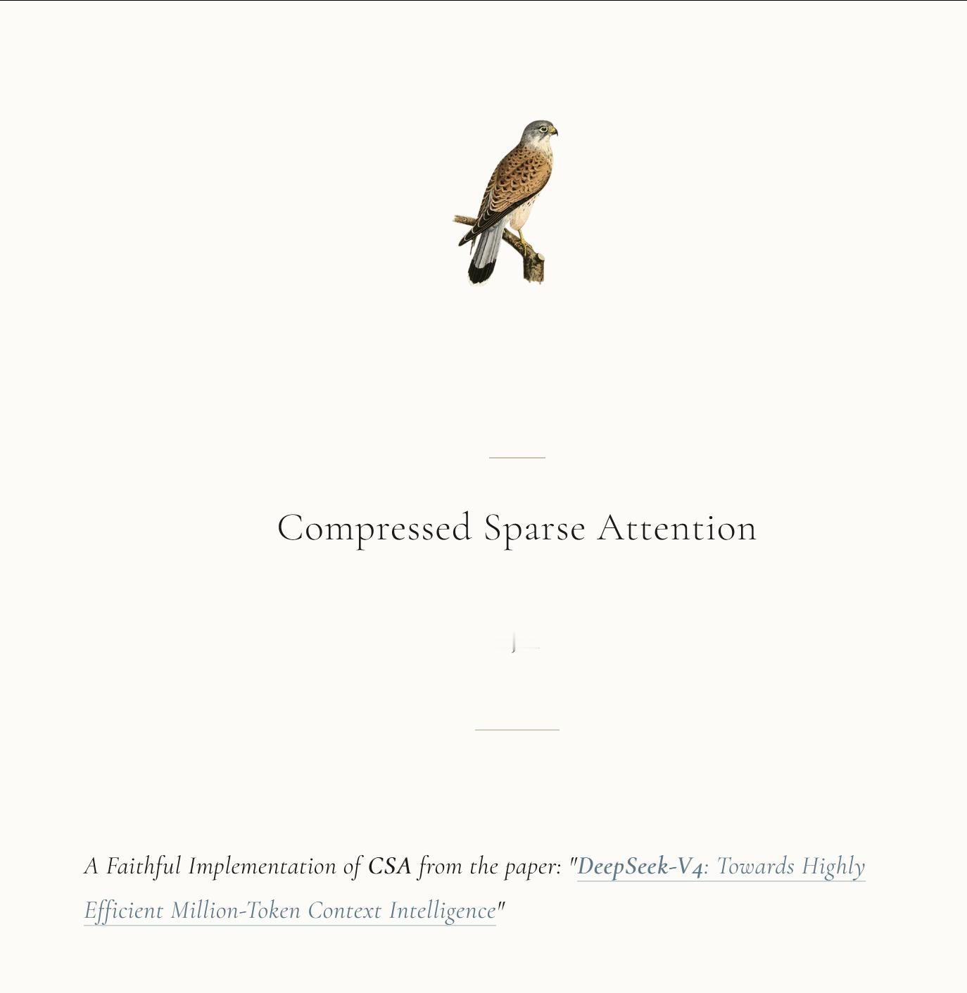 DeepSeek-V4论文中CSA(Compressed Sparse Attention)的参考实现。www.k-a.in/CSA.html