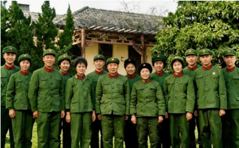 【这是1974年杨得志全家在武汉过春节,照片中 的十四个人身穿统一的军装】