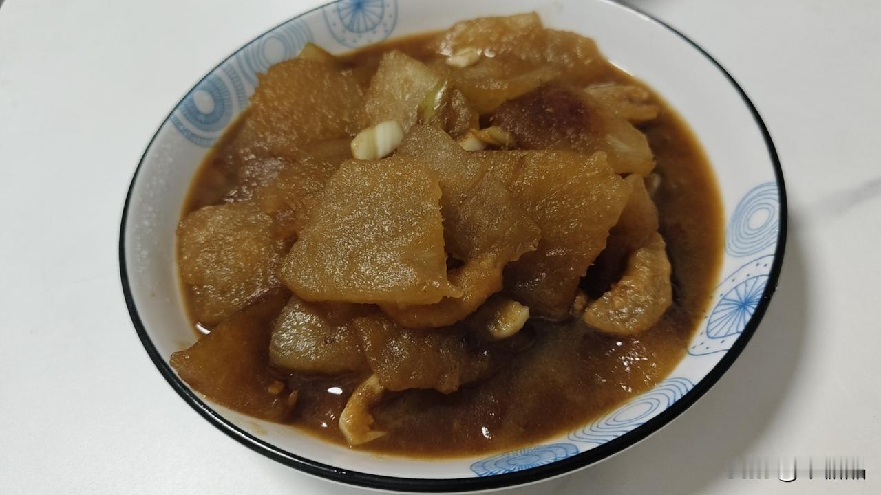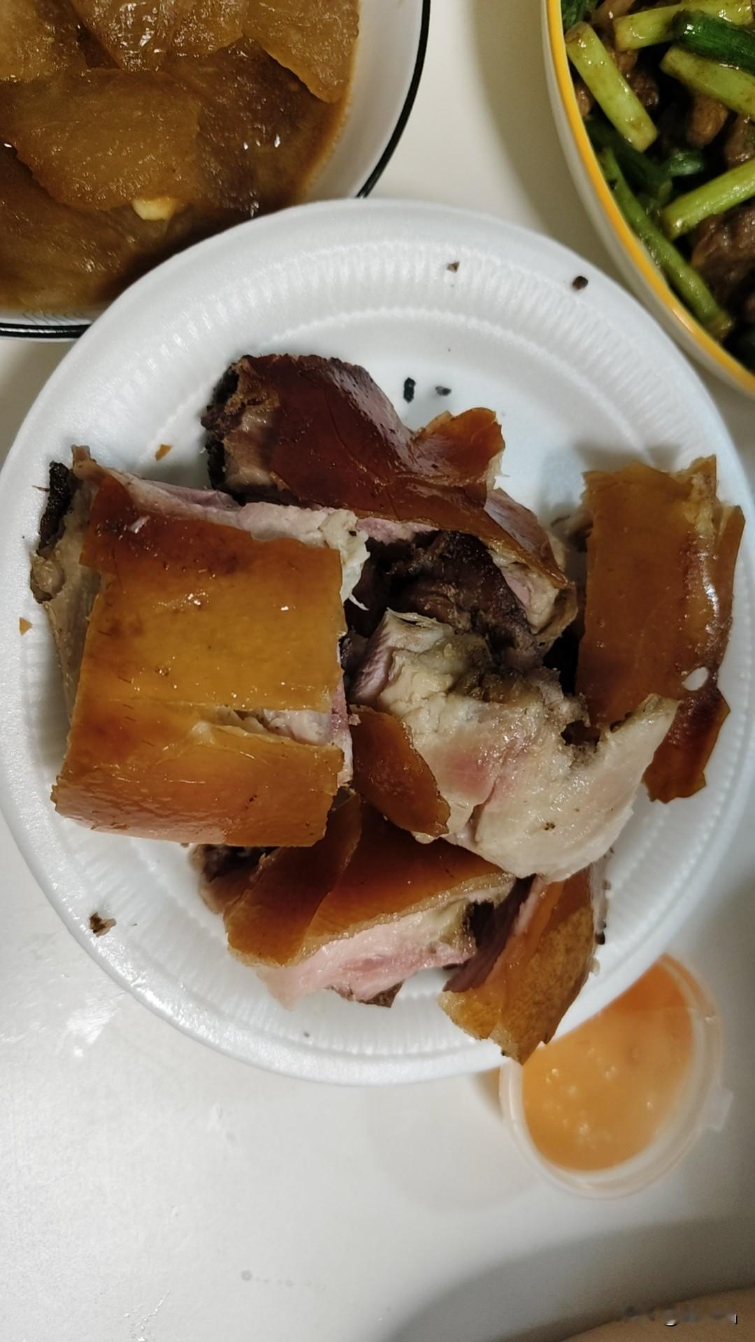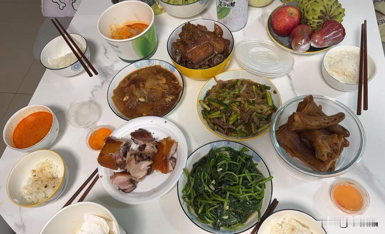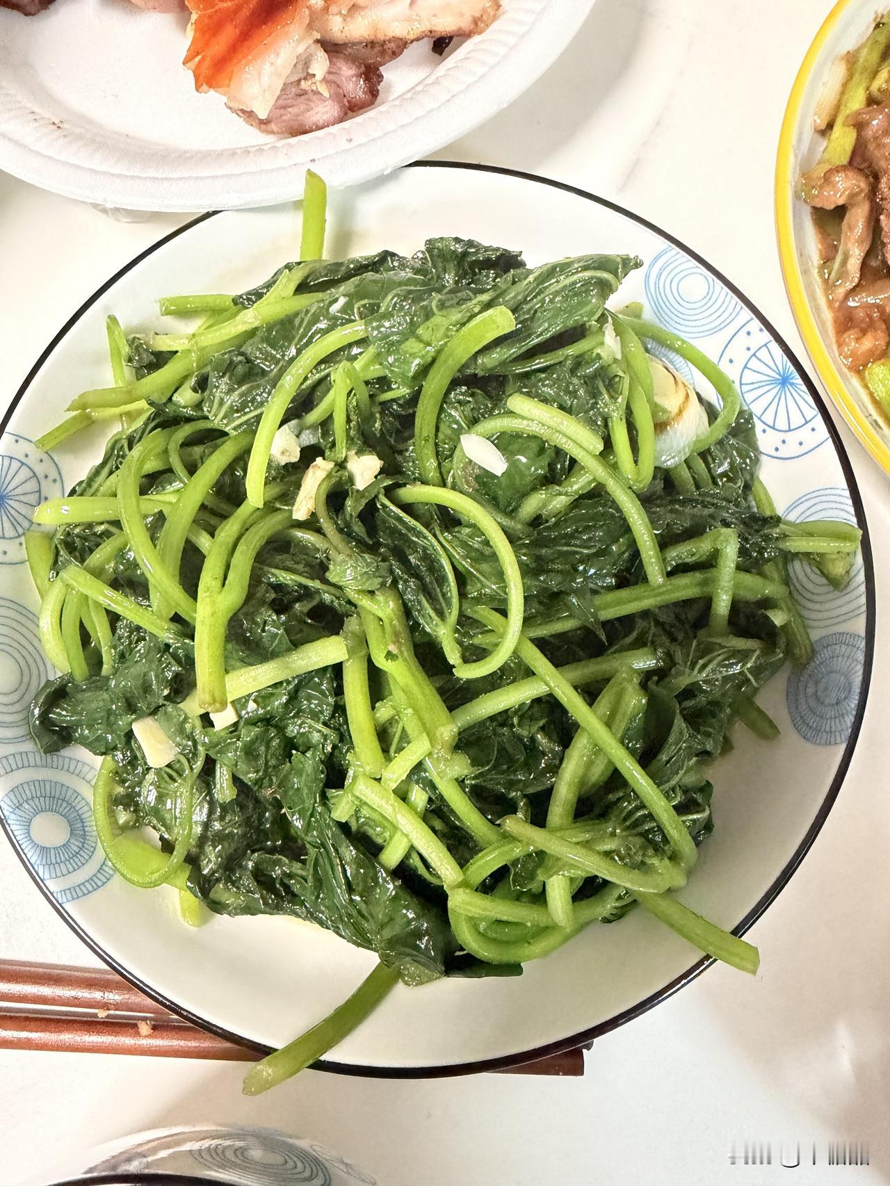 晒晒今天的晚餐:爆炒冬瓜片、糟粕醋冬瓜汤、红烧带鱼、卤猪尾巴、牛肉蒜台炒白菜、烤乳猪、地瓜叶。 女儿说蒜台炒白菜好吃 女婿说爆炒冬瓜片好吃 我说红烧带鱼好吃 女儿喜欢蒜台炒白菜,女婿爱爆炒冬瓜片,我独宠红烧带鱼,一家人的口味都照顾到了。 晒给闺蜜,她说这晚餐也太丰盛了吧,隔着屏幕都闻到香味了。 糟粕醋冬瓜汤是又酸又辣, 特别开胃!! 这一天天的生活尾声在一个晚餐的时间马上结束了。 [福]
