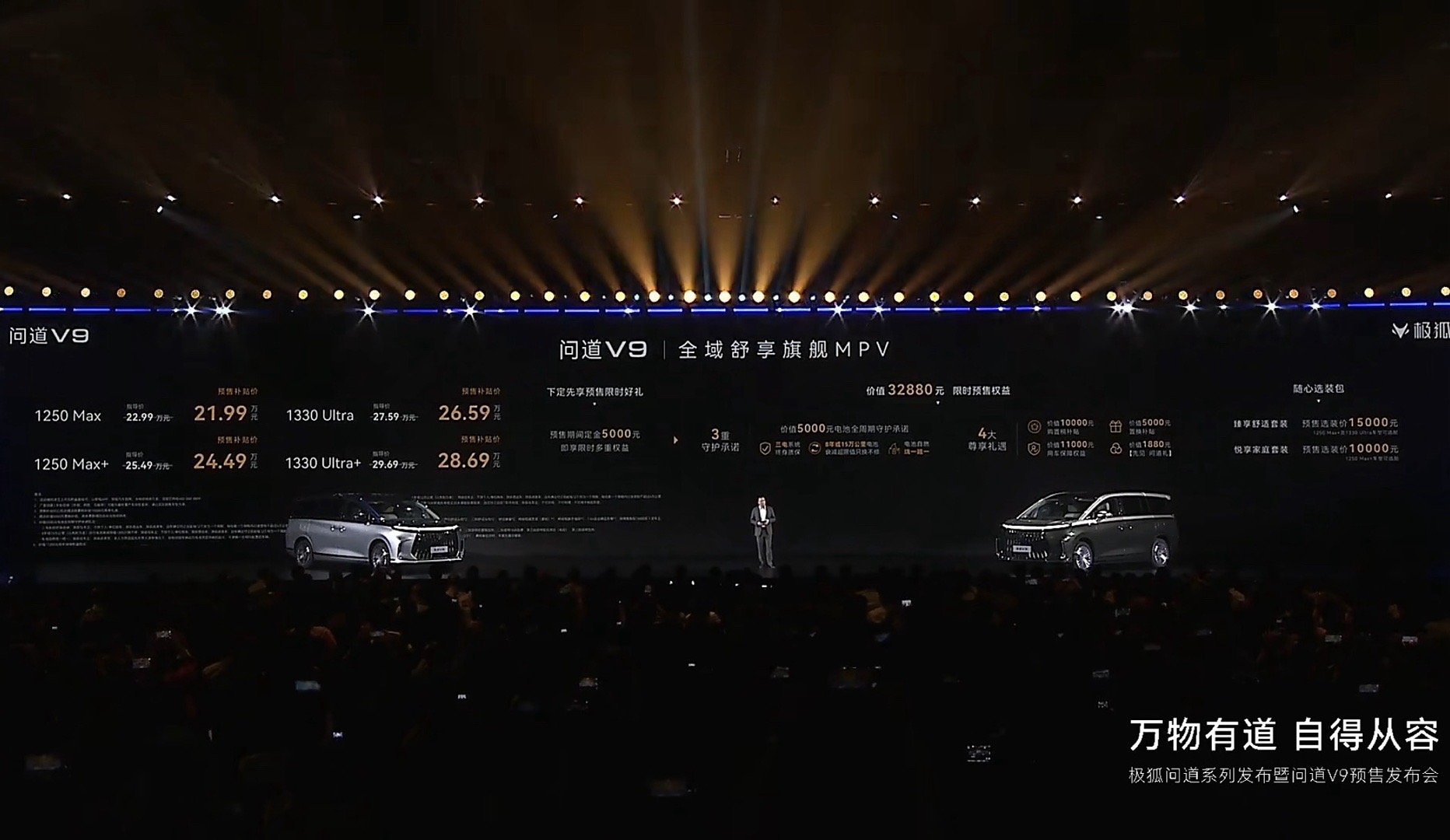 【极狐问道V9开启预售 预售补贴价21.99万元起】4月28日,问道V9正式开启预售,包含四款车型,预售补贴价区间21.99-28.69万元。问道V9基于北极星全数字化高端平台打造,预计将于二季度上市。