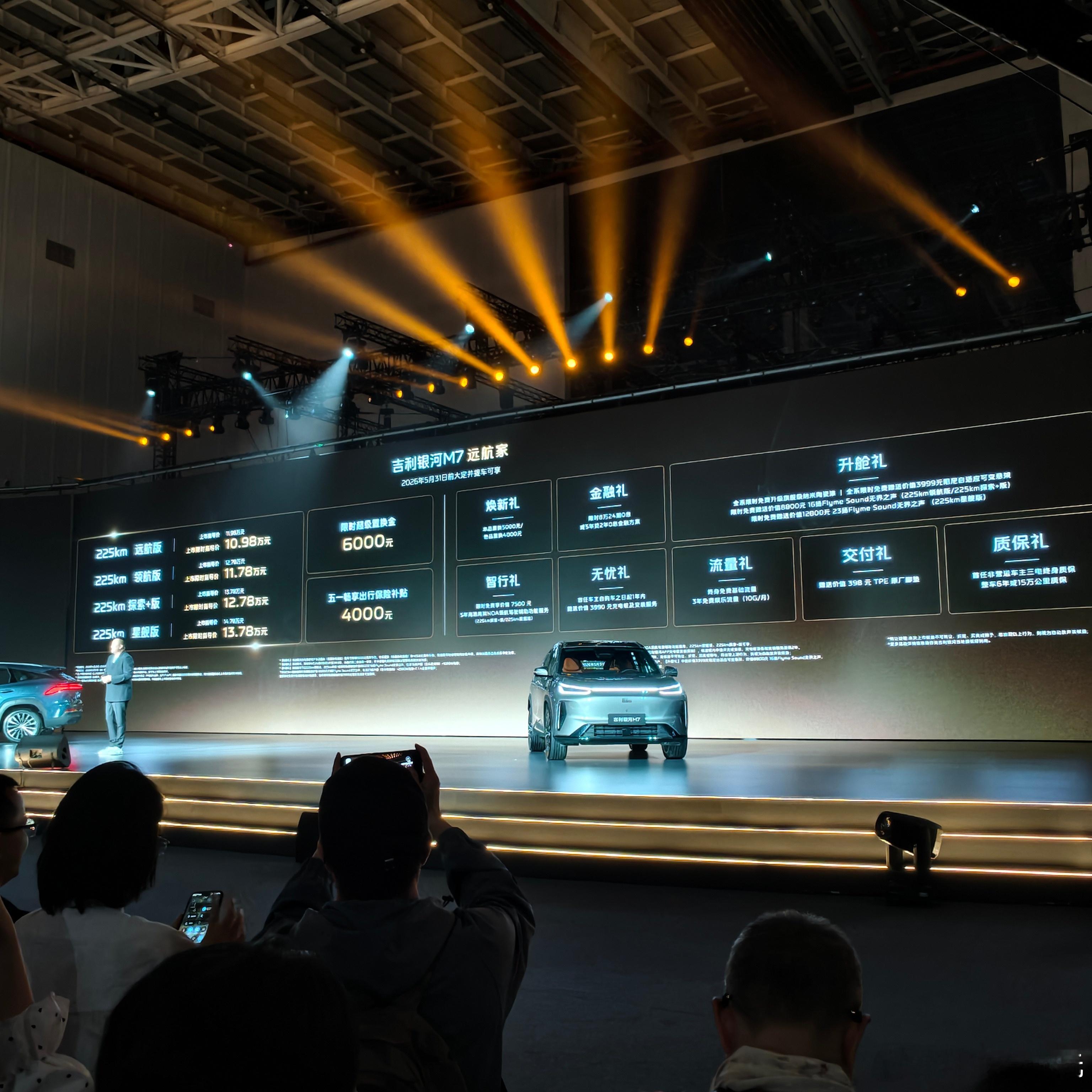 吉利银河M7远航家吉利银河M7远航家正式上市,起步价10.98万元,比预售直降了3万,还把续航、智驾、空间全拉满,这波诚意真的戳到家用用户心坎里了。先看最实在的续航:225km纯电续航+1730km综合续航,日常通勤一周一充完全没问题,长途出行也没续航焦虑。馈电油耗才3.35L,养车成本直接打下来,太适合普通家庭了 。配置更是越级内卷:全系标配千里浩瀚H3智驾,高速NOA、自动泊车都有;7nm龙鹰一号芯片+15.4英寸2.5K屏,车机流畅度拉满;轴距2785mm,得房率88%,十层棉花糖座椅+23扬声器音响,家用舒适感拉满。10万级能给到长续航、低油耗、高智驾和大空间,家用插混SUV的天花板,这次真的要被吉利重新定义了10.98万起吉利银河M7远航家上市